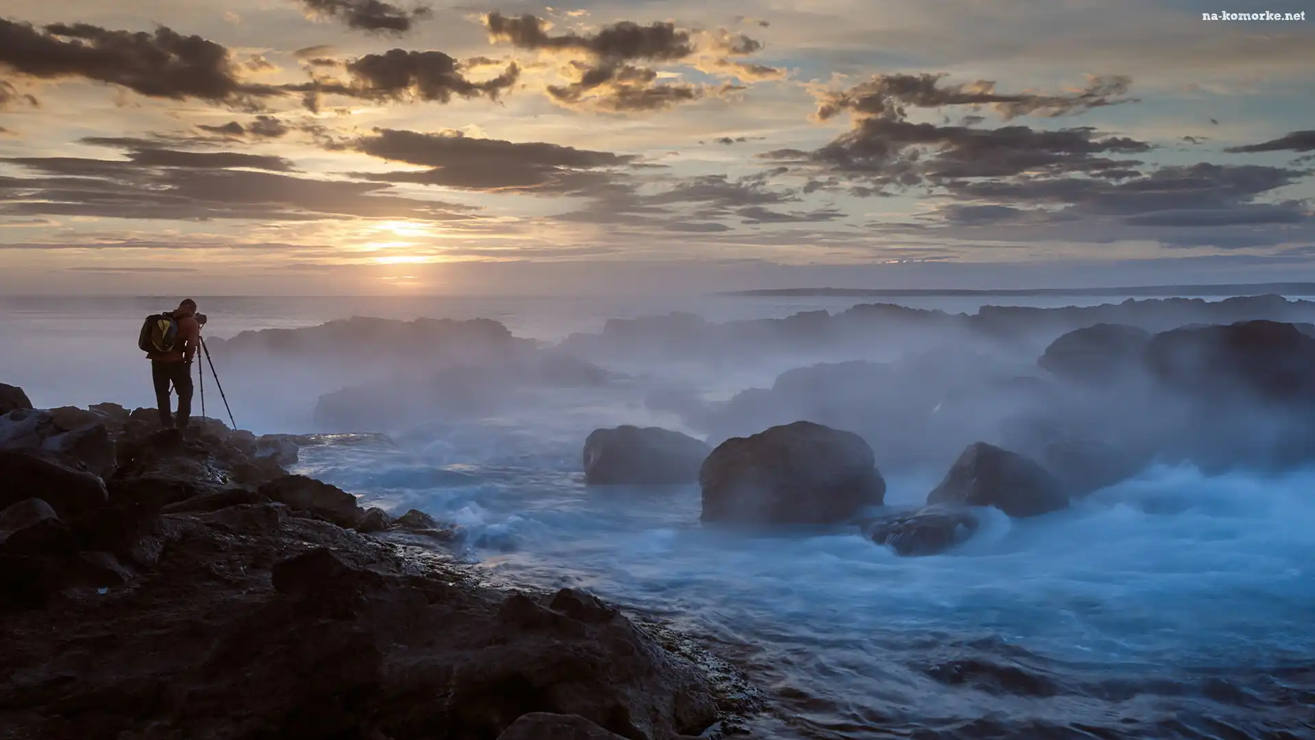 Morze, Fotograf, Fale, Kamienie na Komórkę