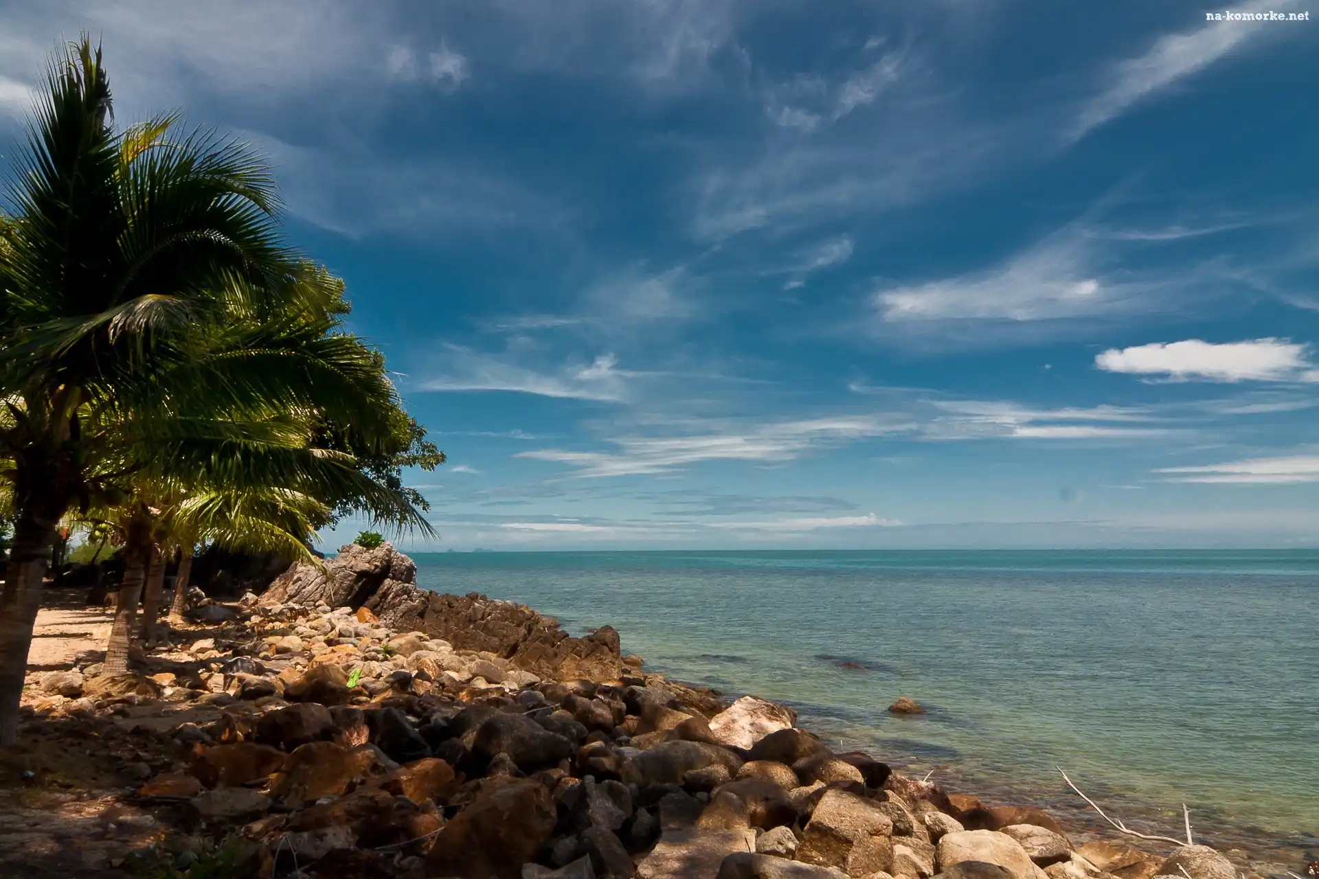 Morze, Kamienie, Fale, Palmy na Komórkę