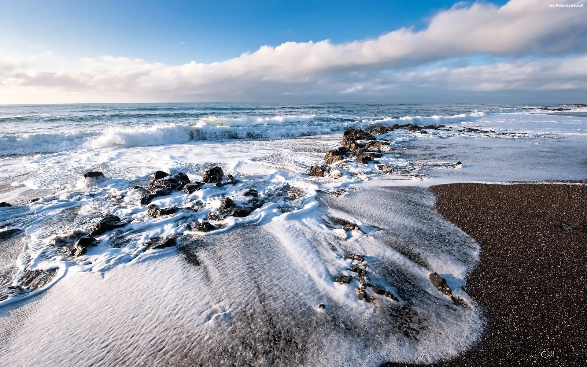 Morze, Niebo, Fale, Chmury na Komórkę