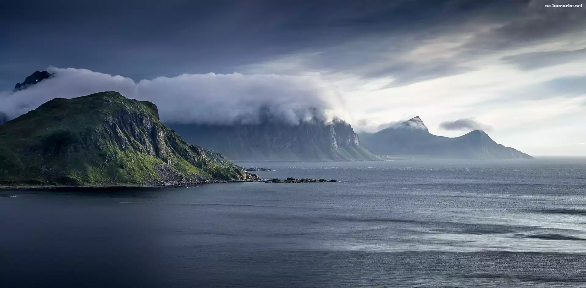 Morze, Wybrzeże, Góry, Chmury na Komórkę
