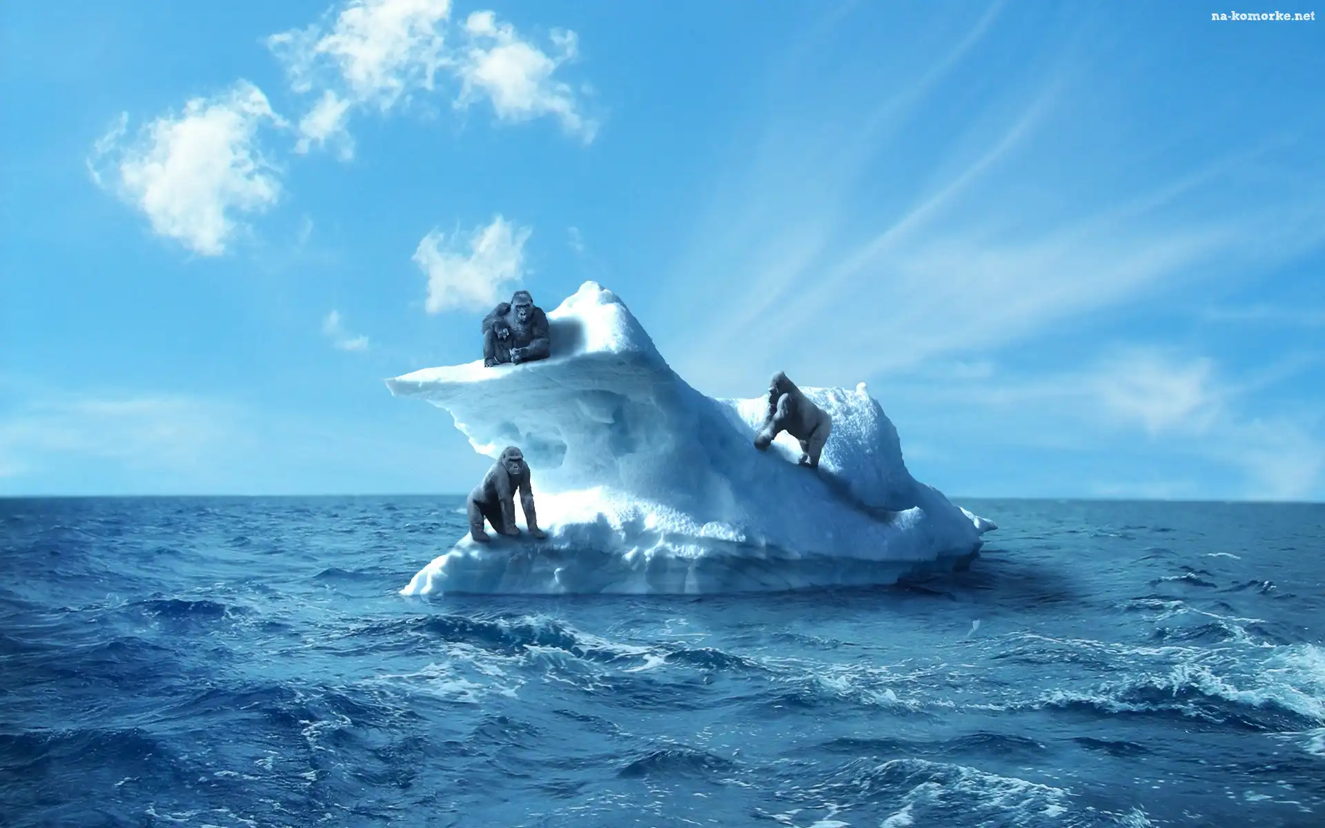 Goryl, Srebrzysty Pawiany Pingwiny, Góra Lodowa, Ocean Lodowce Szympans Zachód, Lodowe, Słońca, Góry Zachód Słońca, Chmura, Morze Małpki, Zdziwienie Spokojne, Morze, Karaka Makaki, Japońskie Małpa Wędrowiec, Morze, Góry, Lodowe, Żaglowiec Góra, Lodowa Żaglowiec, Horyzont, Boja