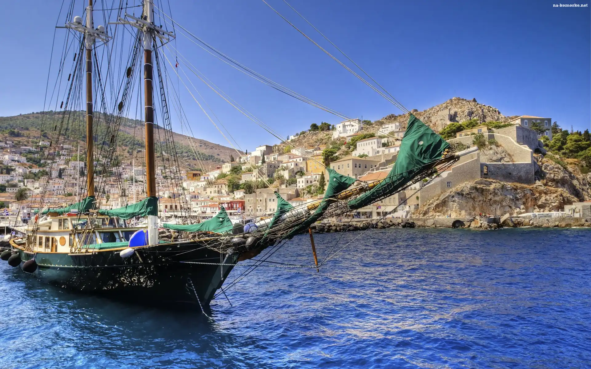 Żaglowiec, Grecja, Morze, Wyspa na Komórkę