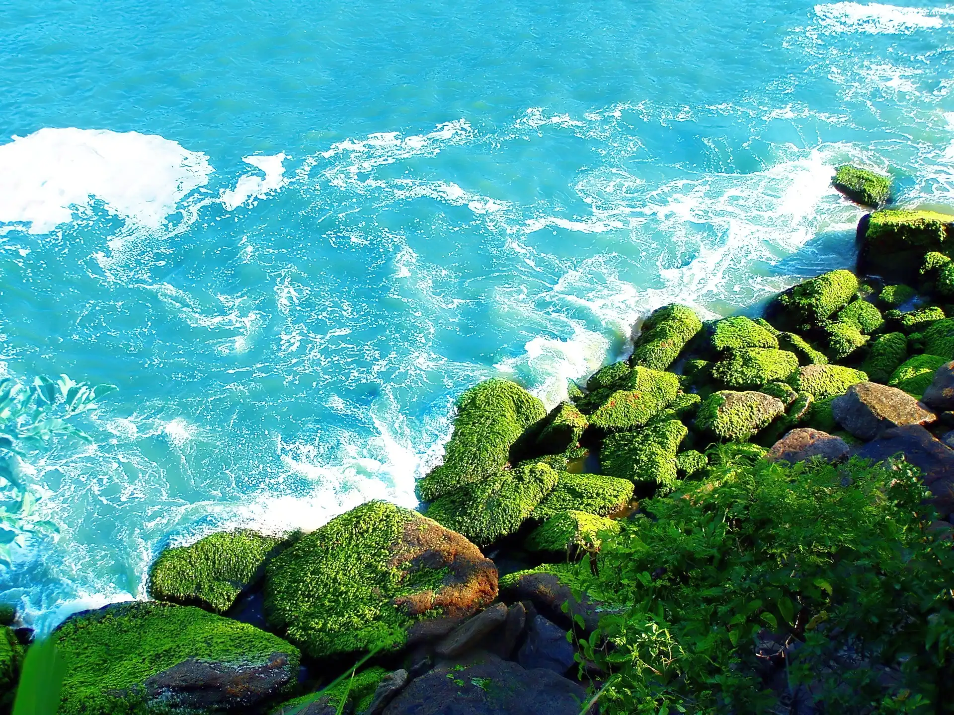 Morze, Glonami, Kamienie, Porośnięte na Komórkę