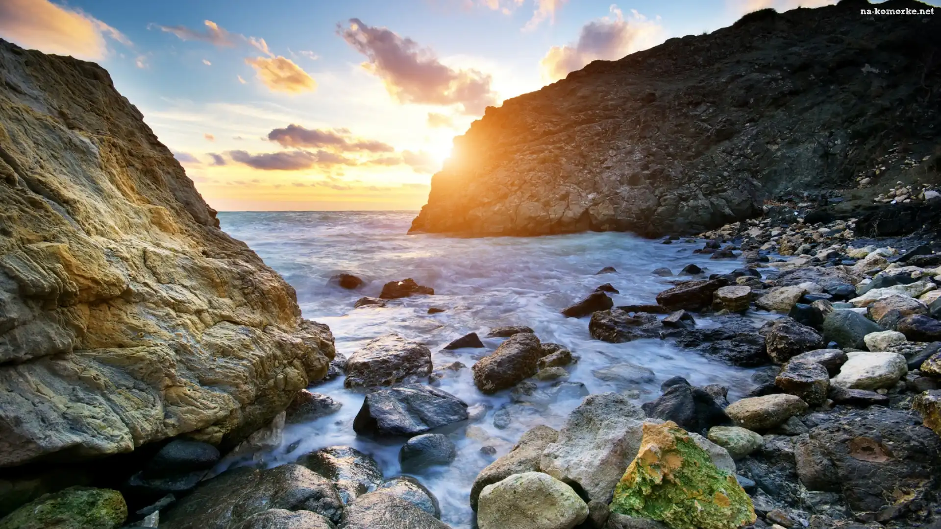 Morze, Wschód Słońca, Kamienie, Skały na Komórkę