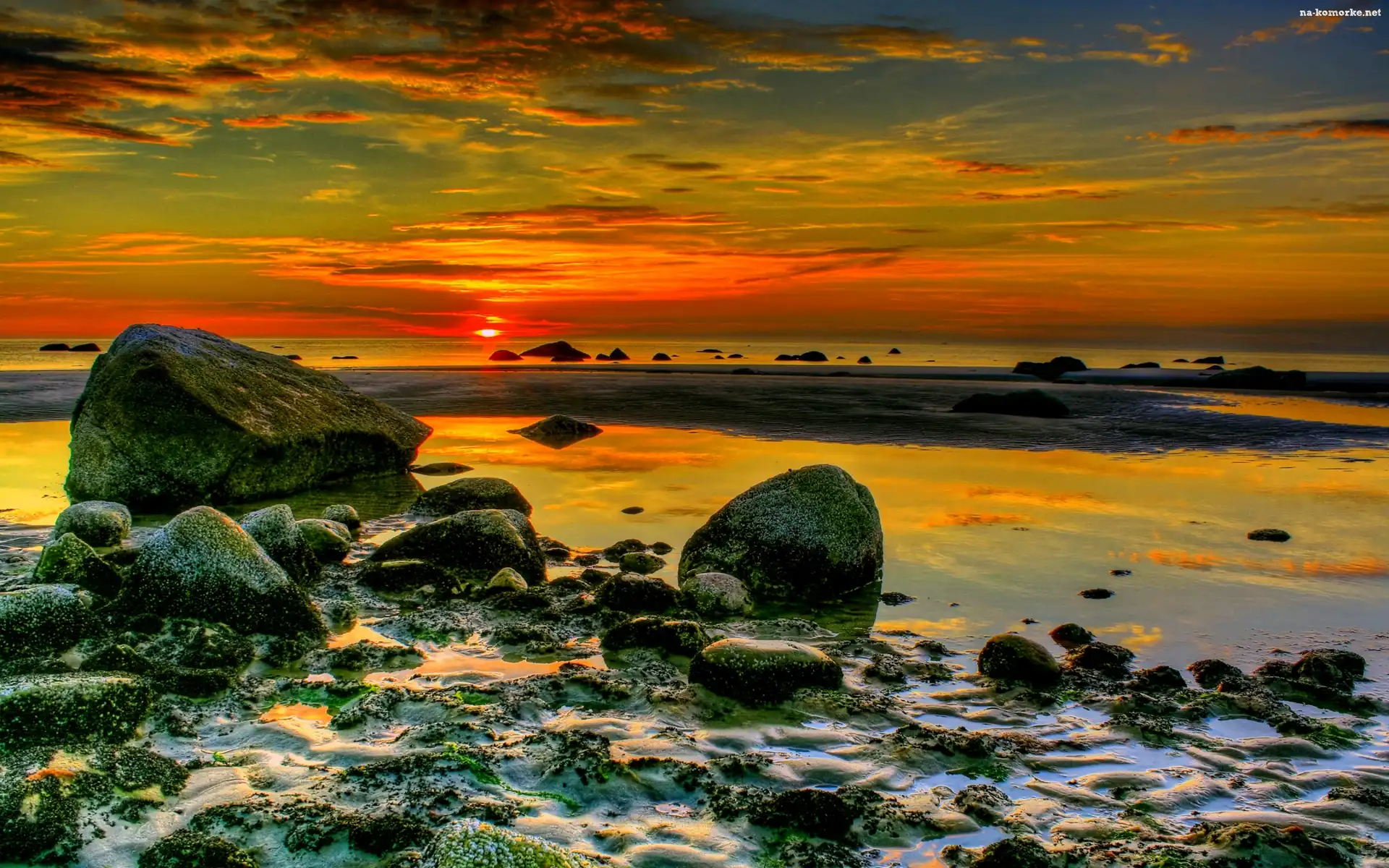 Morze, Słońca, Kamienie, Zachód na Komórkę