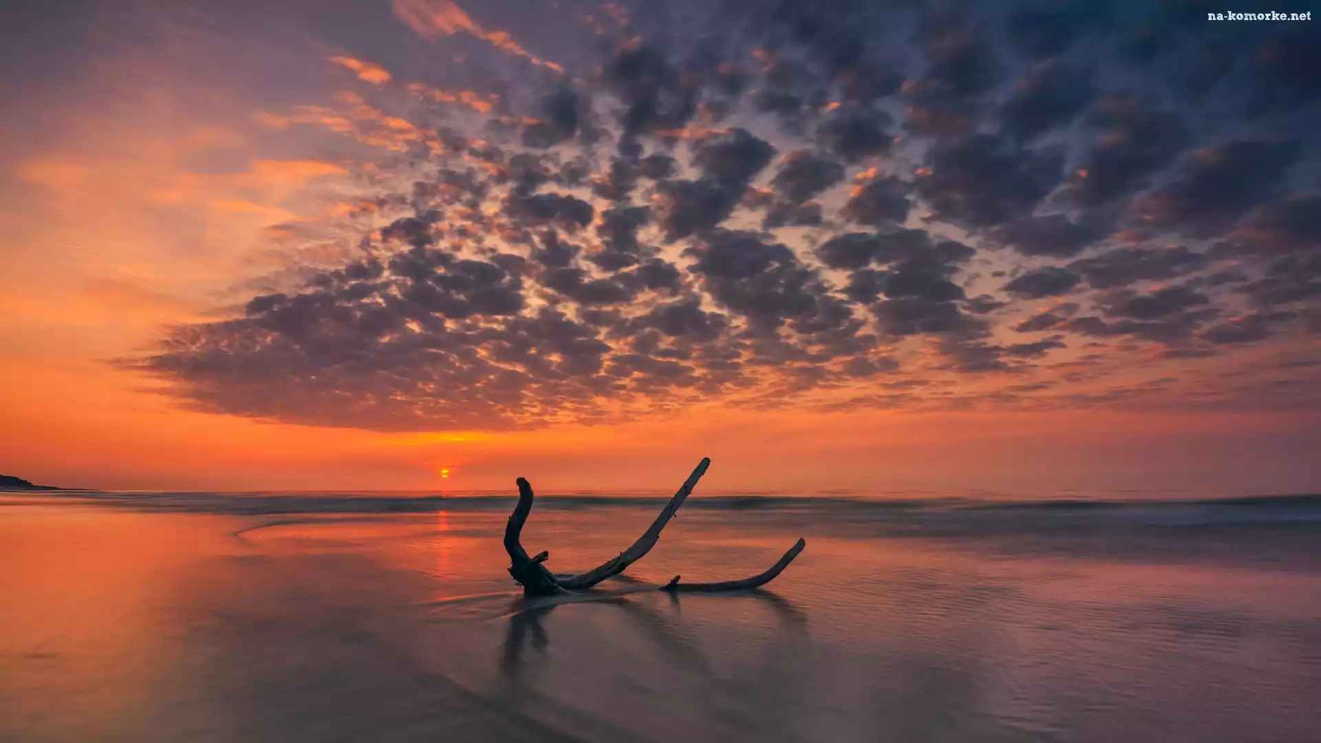 Kolorowe, Morze, Zachód słońca, Chmury, Konar, Niebo na Komórkę