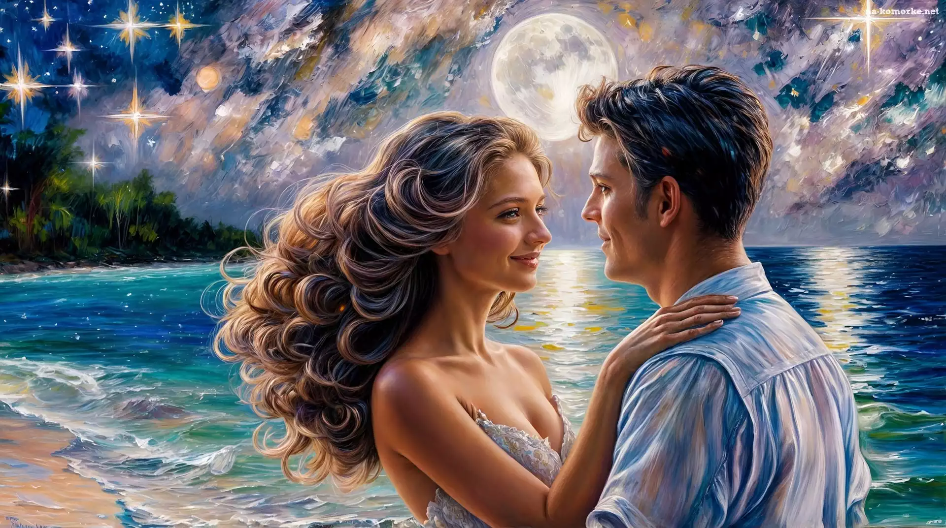 Kobieta, Morze, Księżyc, Mężczyzna, Grafika na Komórkę