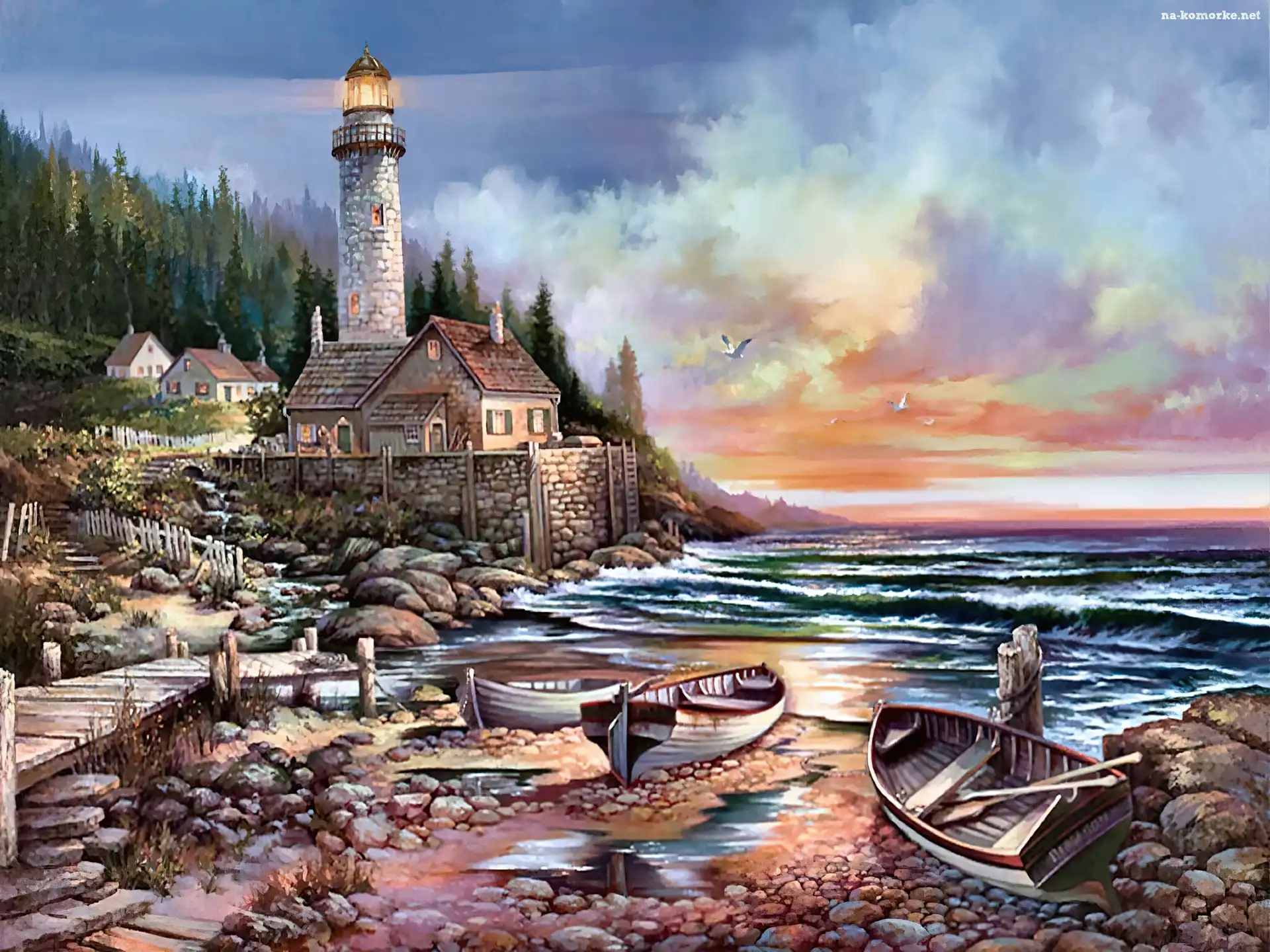 Morze, Malarstwo, Latarnia, Morska na Komórkę