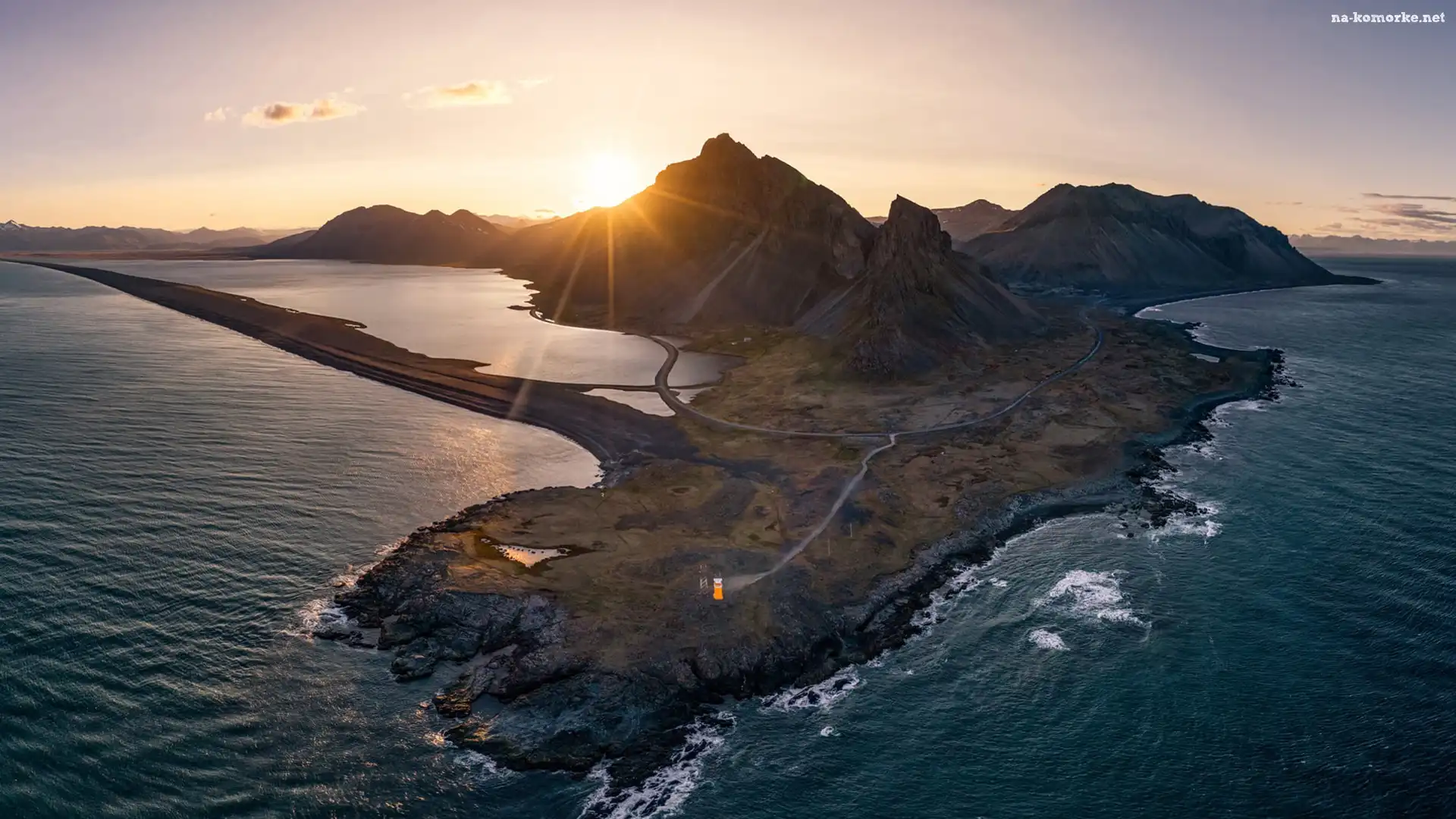 Morze, Wschód słońca, Góry, Latarnia morska na Komórkę