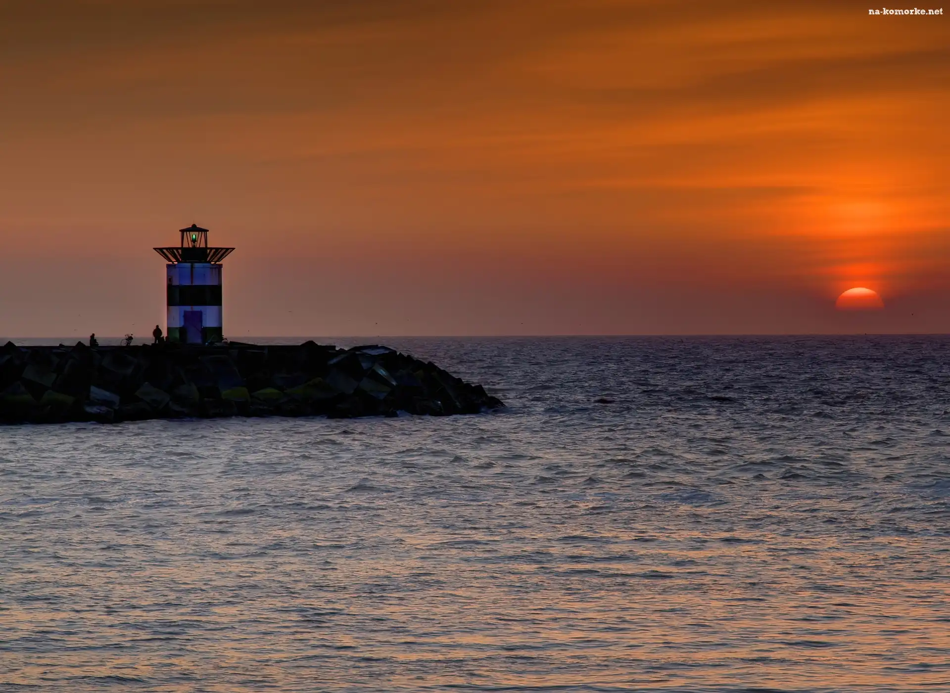 Morze, Zachód Słońca, Latarnia Morska na Komórkę