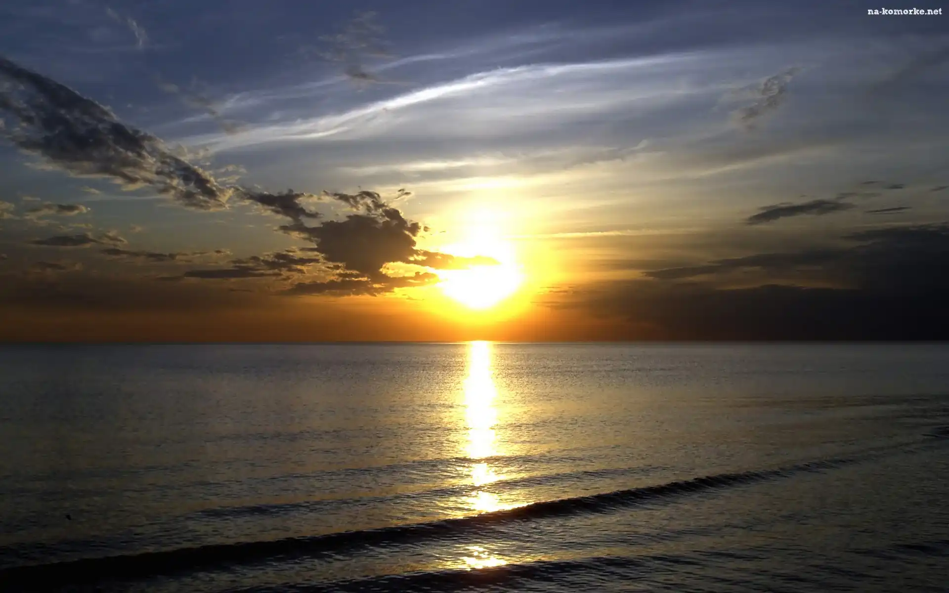 Morze, Zachód Słońca, Niebo, Horyzont na Komórkę