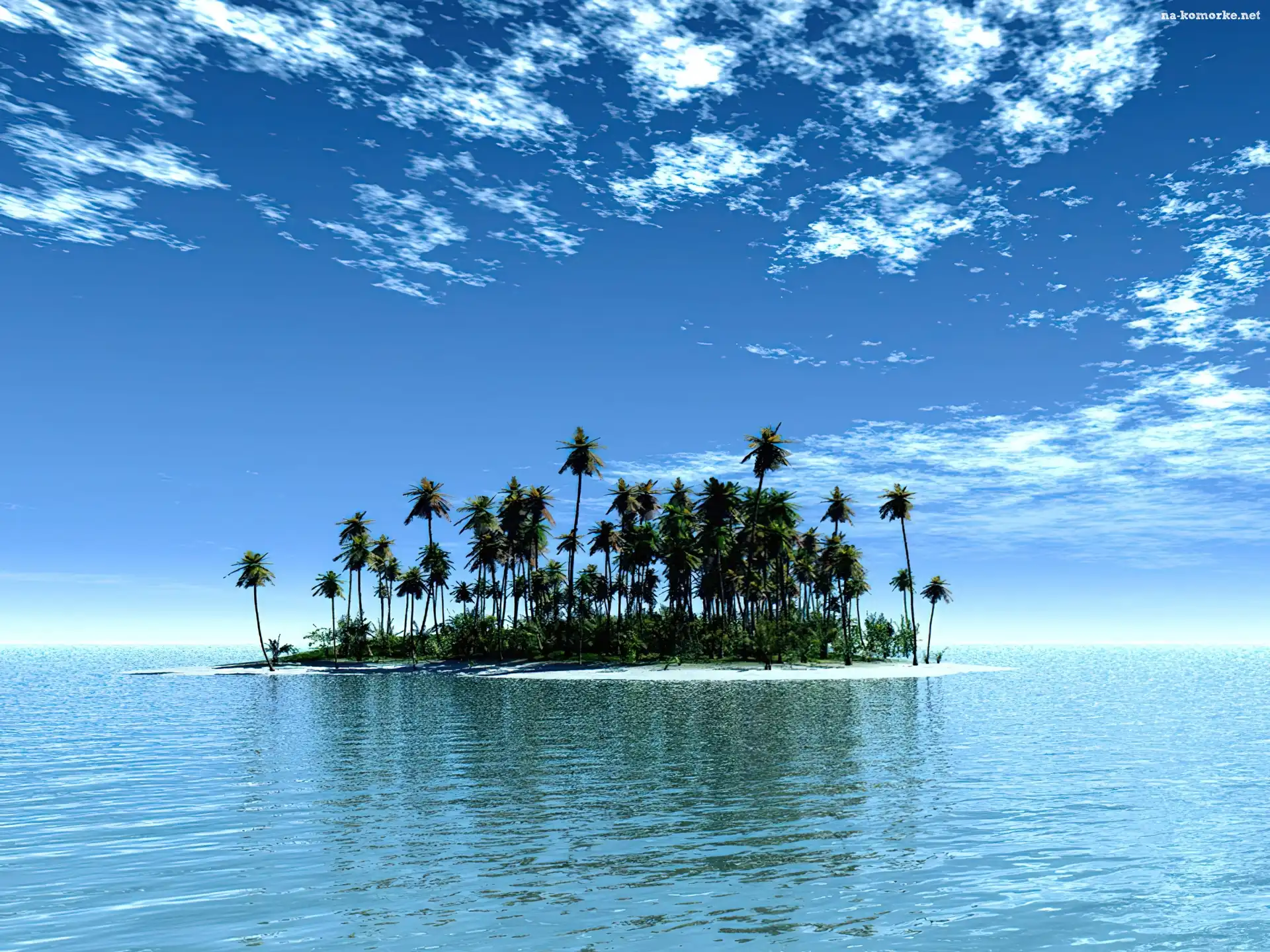 Świt, Palmy, Morze, Wysepka na Komórkę
