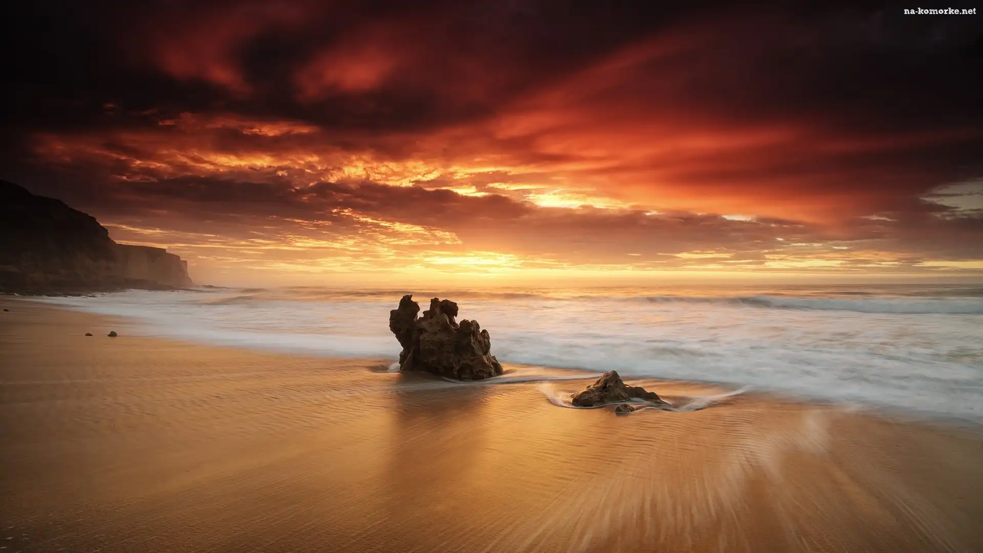 Morze, Chmury, Plaża, Skały na Komórkę