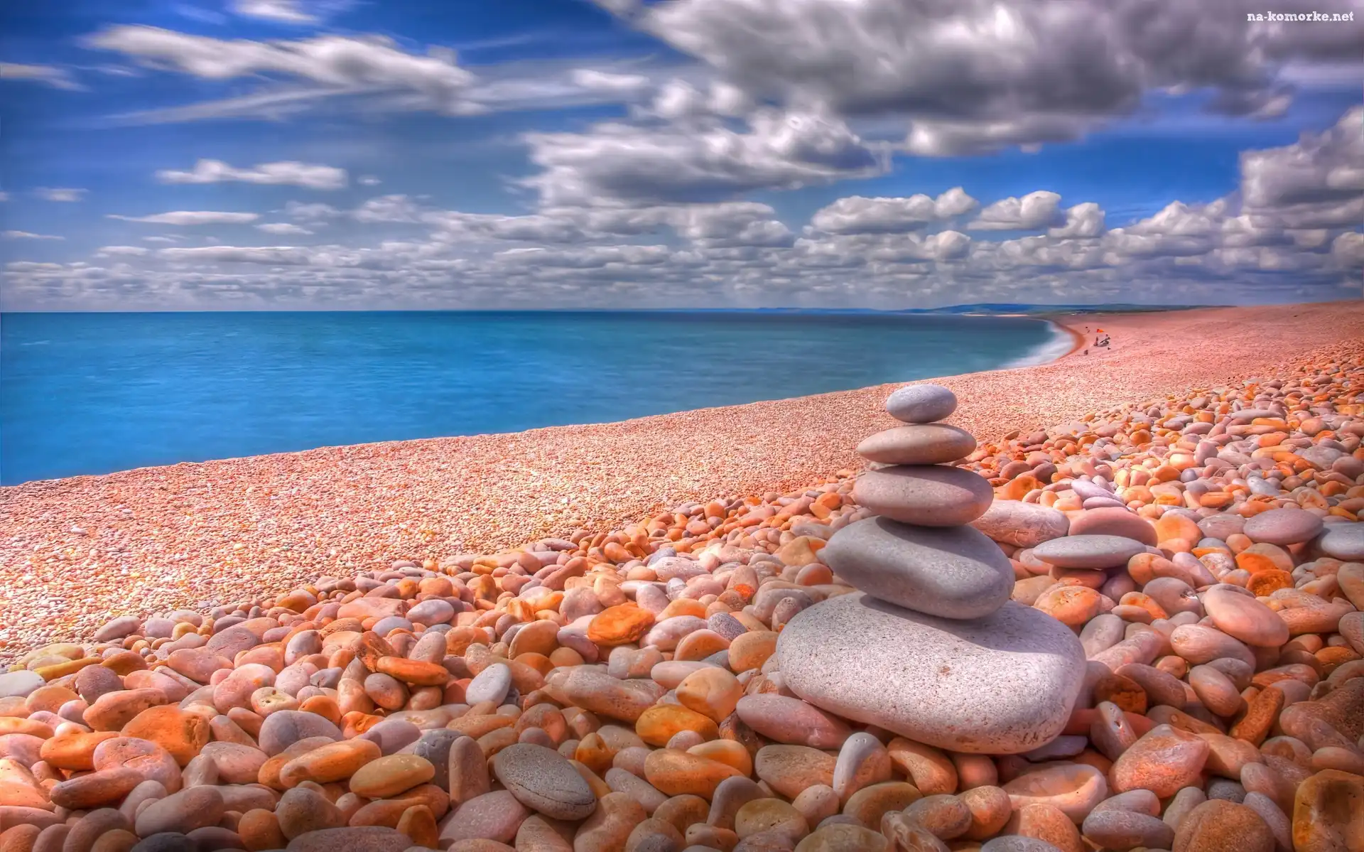 Morze, Kamienie, Plaża, Piramidka na Komórkę