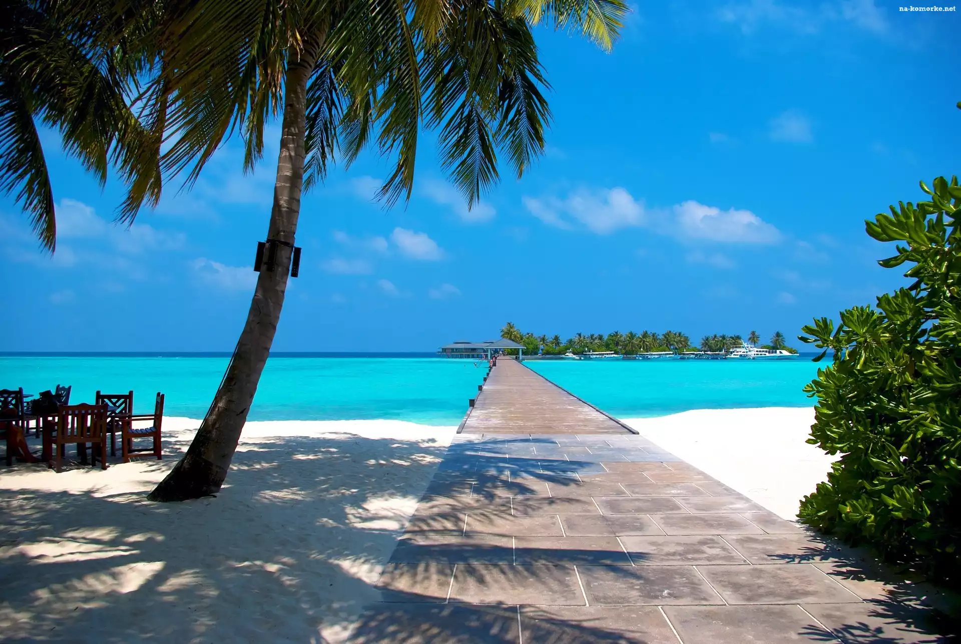 Morze, Malediwy, Plaża, Palmy na Komórkę