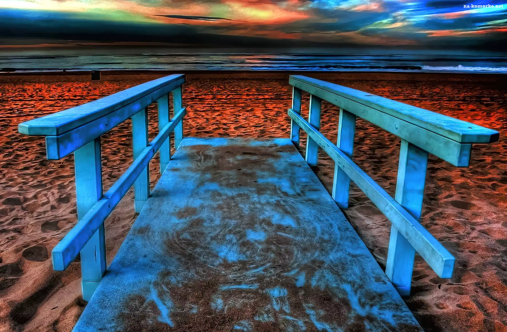 Morze, Mostek, Plaża, Niebieski na Komórkę