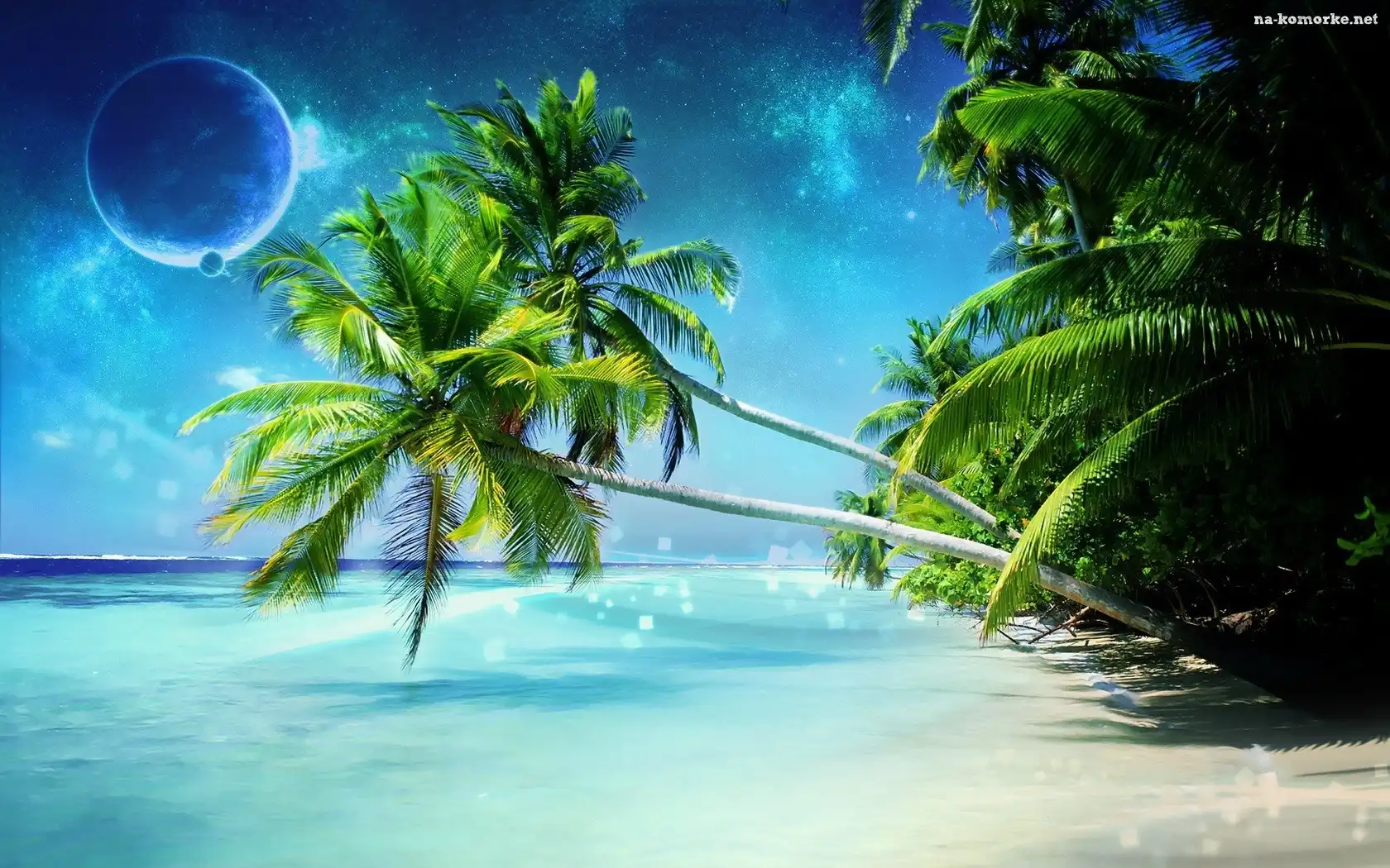 Morze, Planeta, Plaża, Palmy na Komórkę
