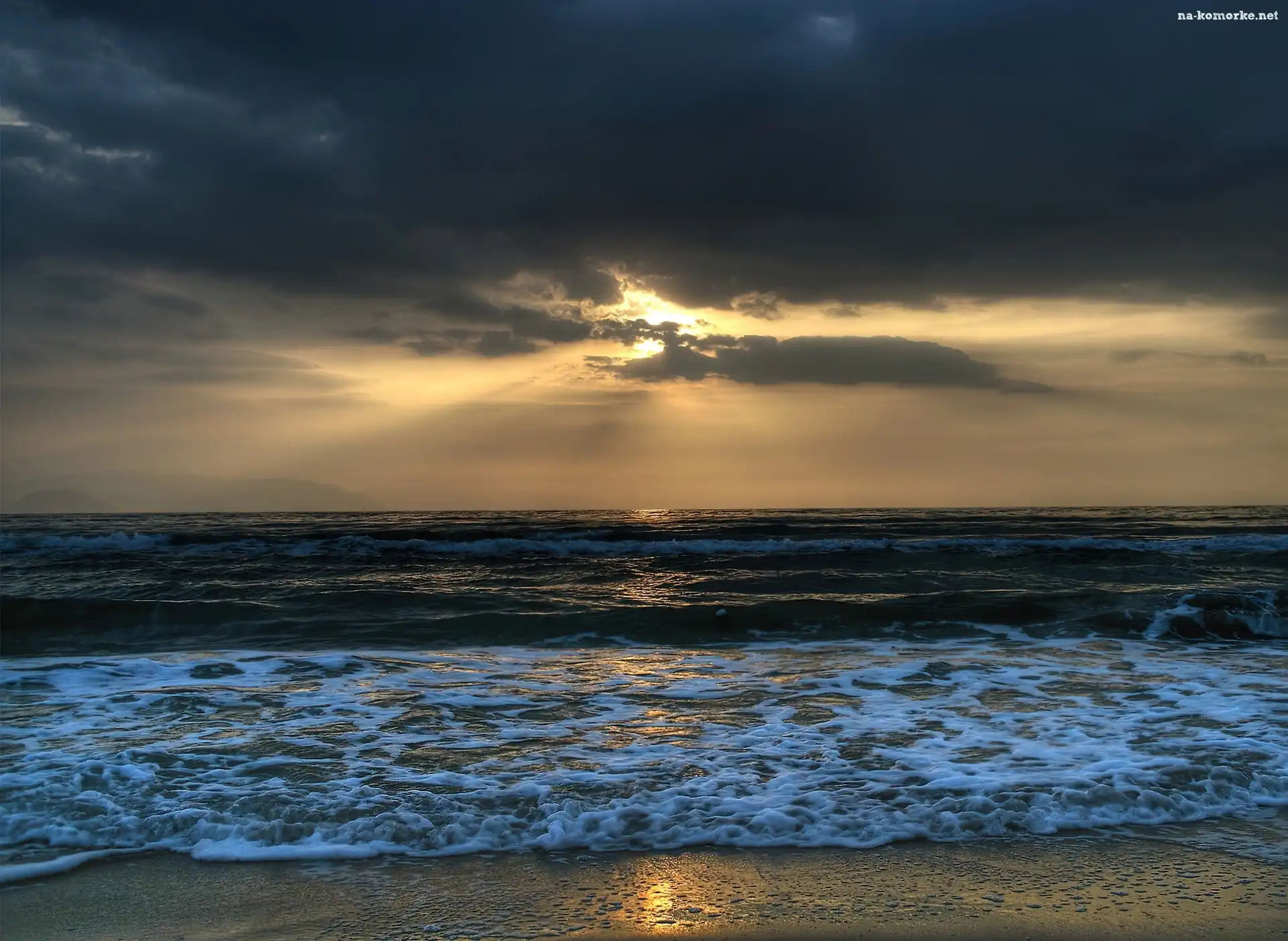 Morze, Promienie, Plaża, Przebijające na Komórkę