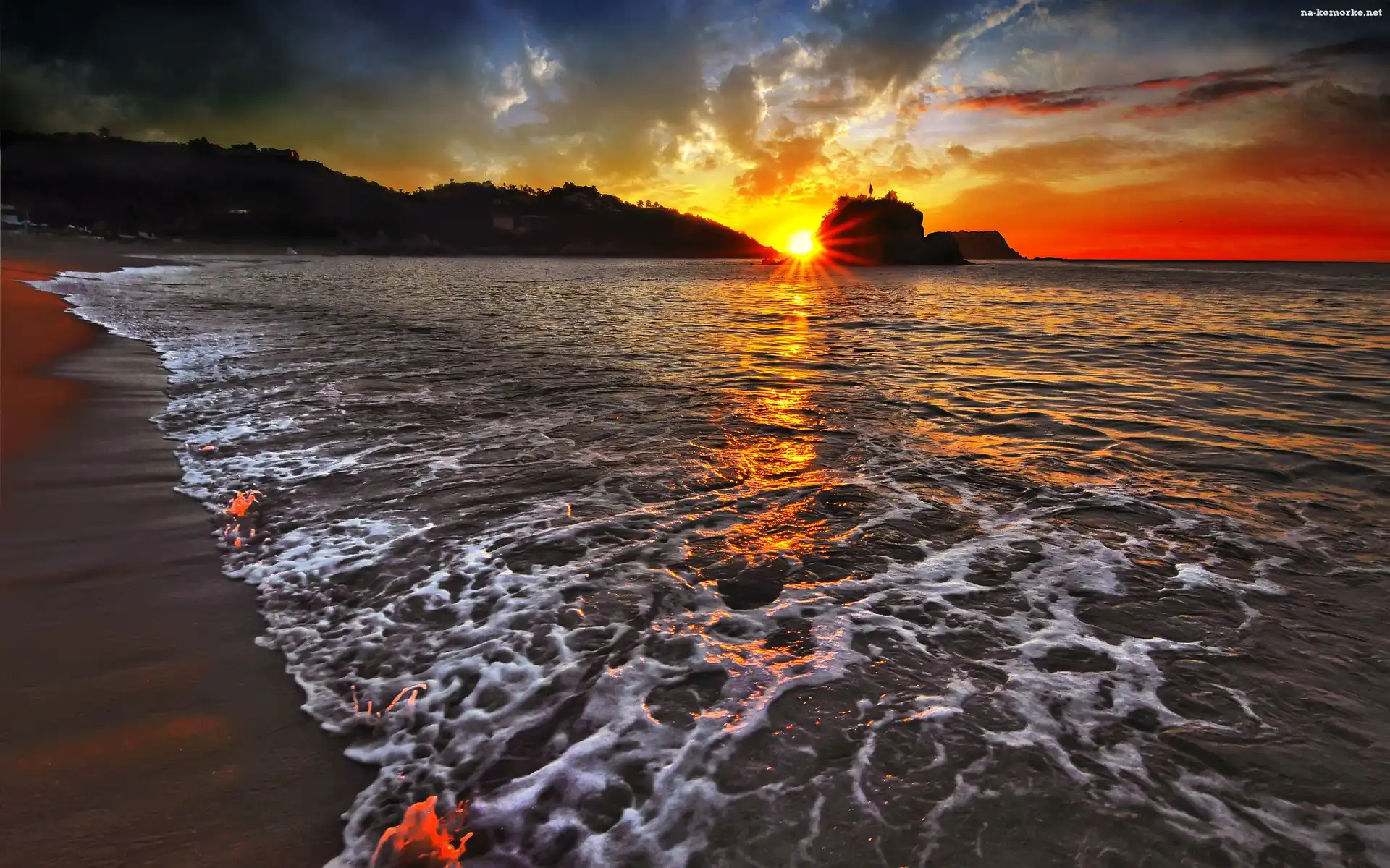 Morze, Słońca, Plaża, Zachód na Komórkę