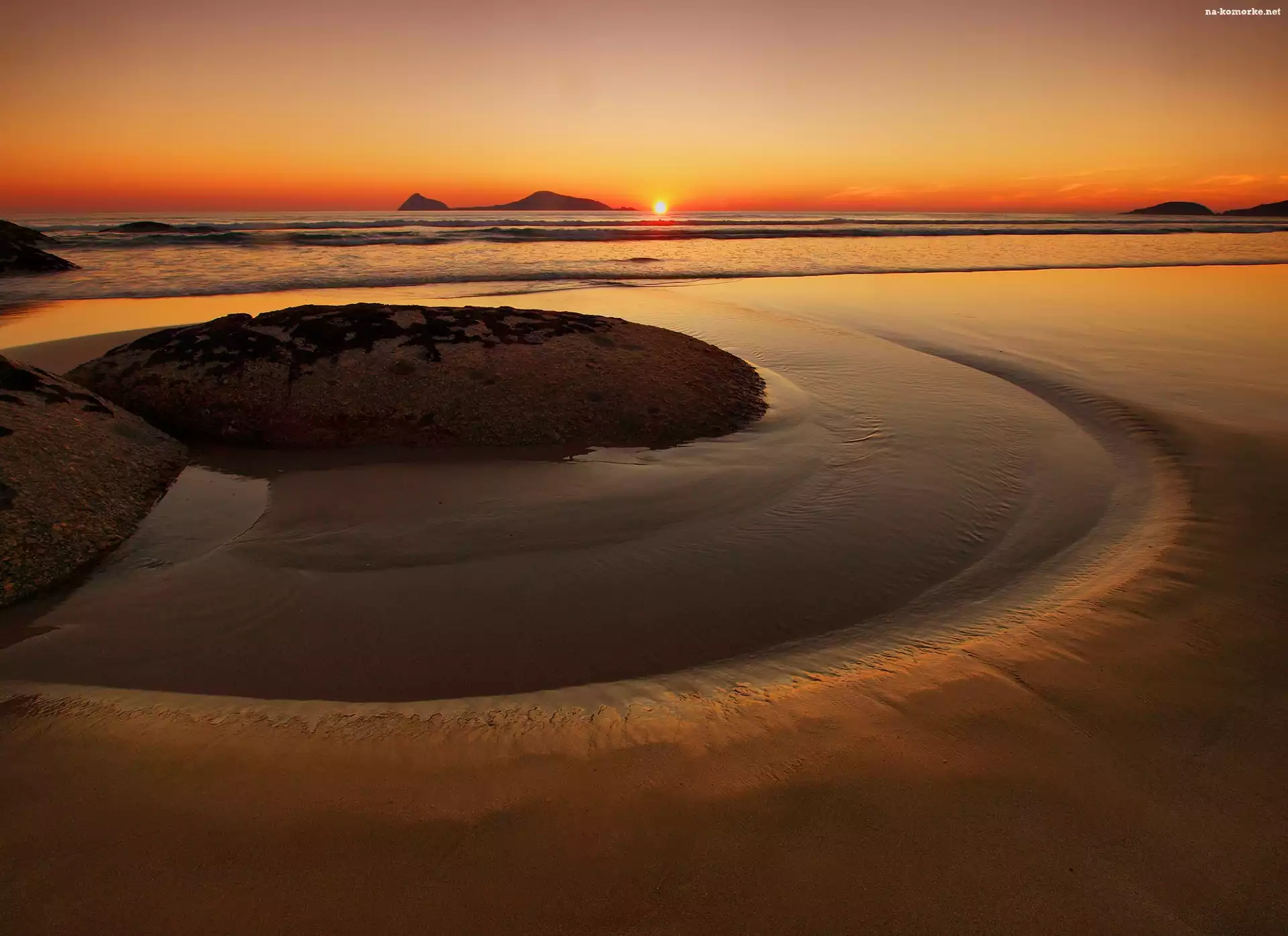 Morze, Słońca, Plaża, Zachód na Komórkę