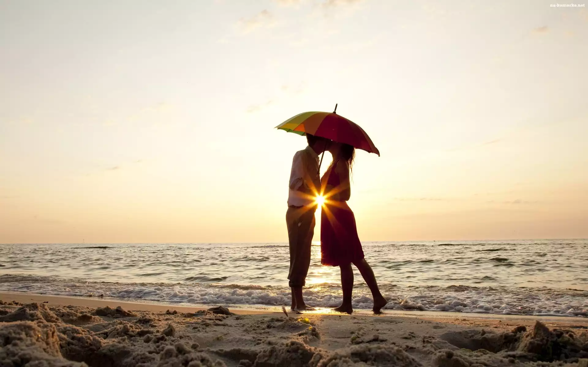 Morze, Para, Zakochana, Słońca, Plaża, Promienie na Komórkę