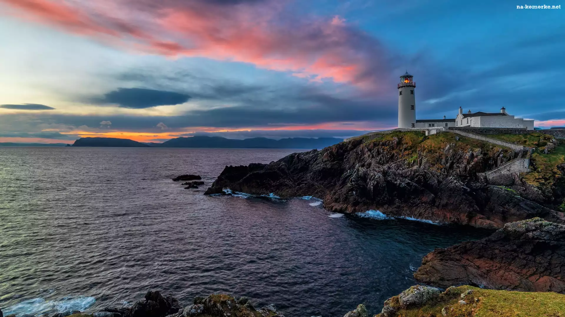 Skały, Chmury, Fanad Head Lighthouse, Irlandia, Morze, Poranek, Latarnia morska, Wybrzeże na Komórkę |