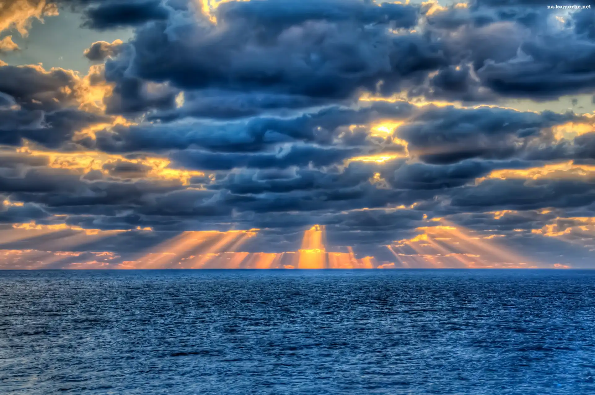 Morze, Zachód, Słońca, Promienie, Chmury na Komórkę