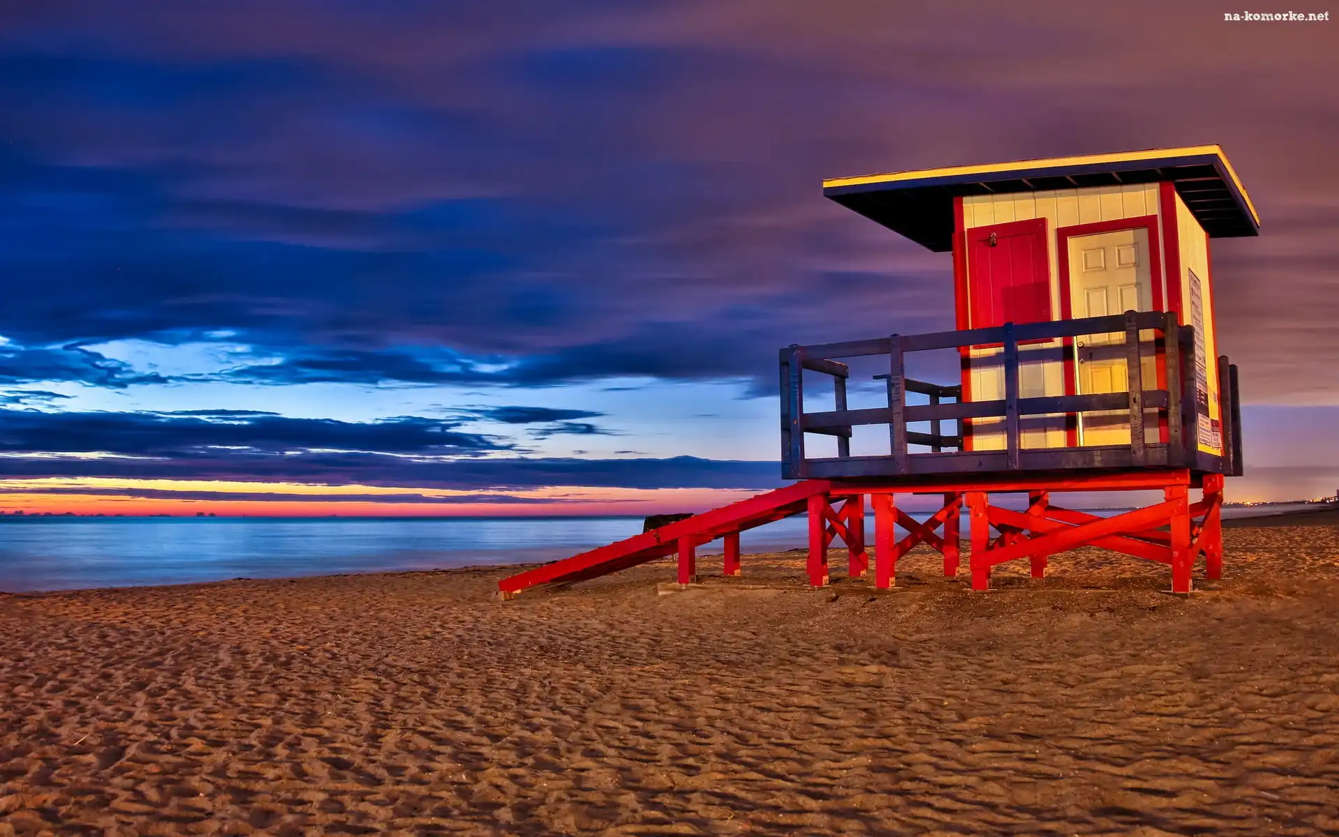 Morze, Stanowisko, Plaża, Słońca, Ratownika, Zachód na Komórkę