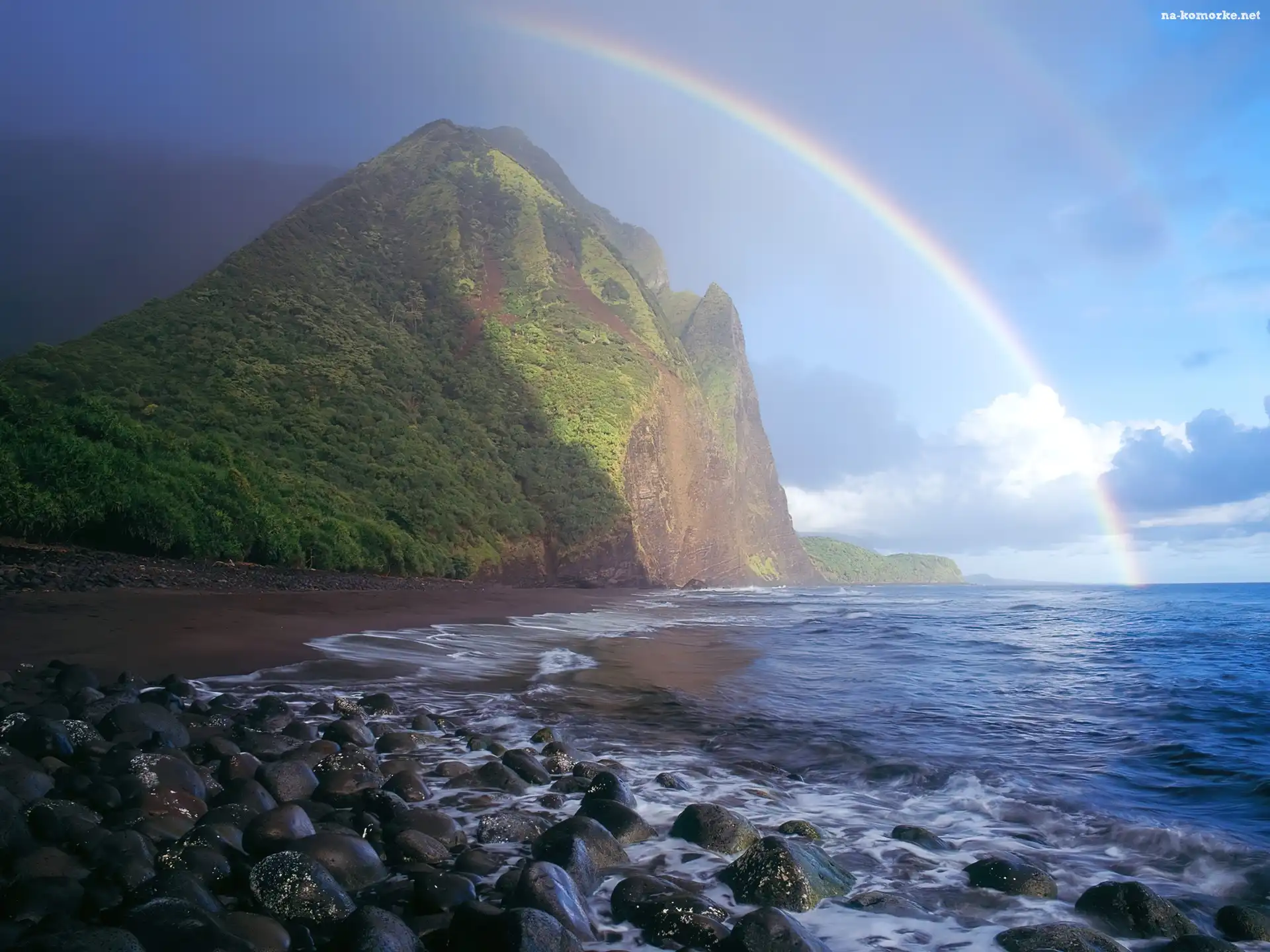 Morze, Tęcza, Skała, Wybrzeże na Komórkę