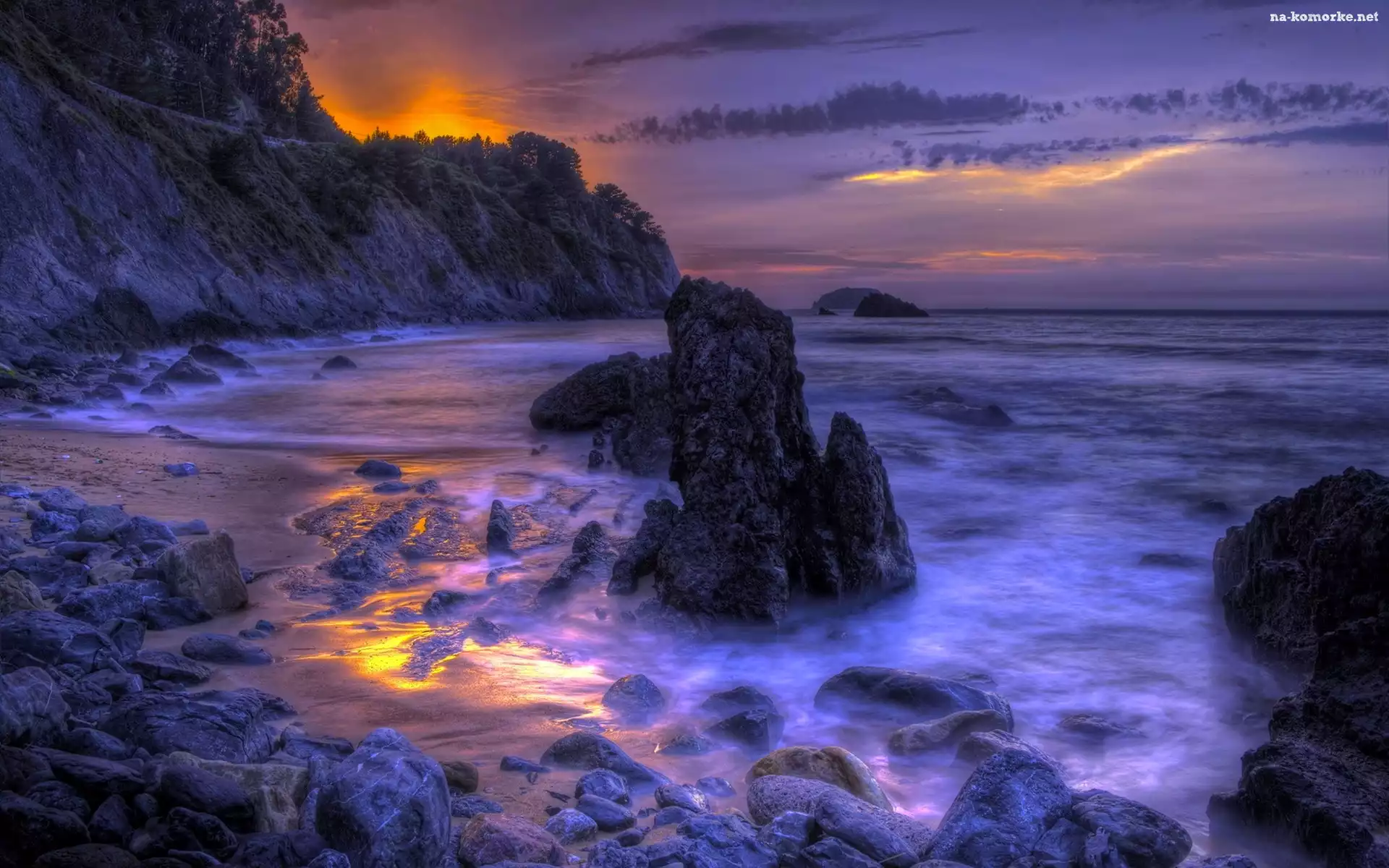 Morze, Zmierzch, Skaliste, Wybrzeże na Komórkę