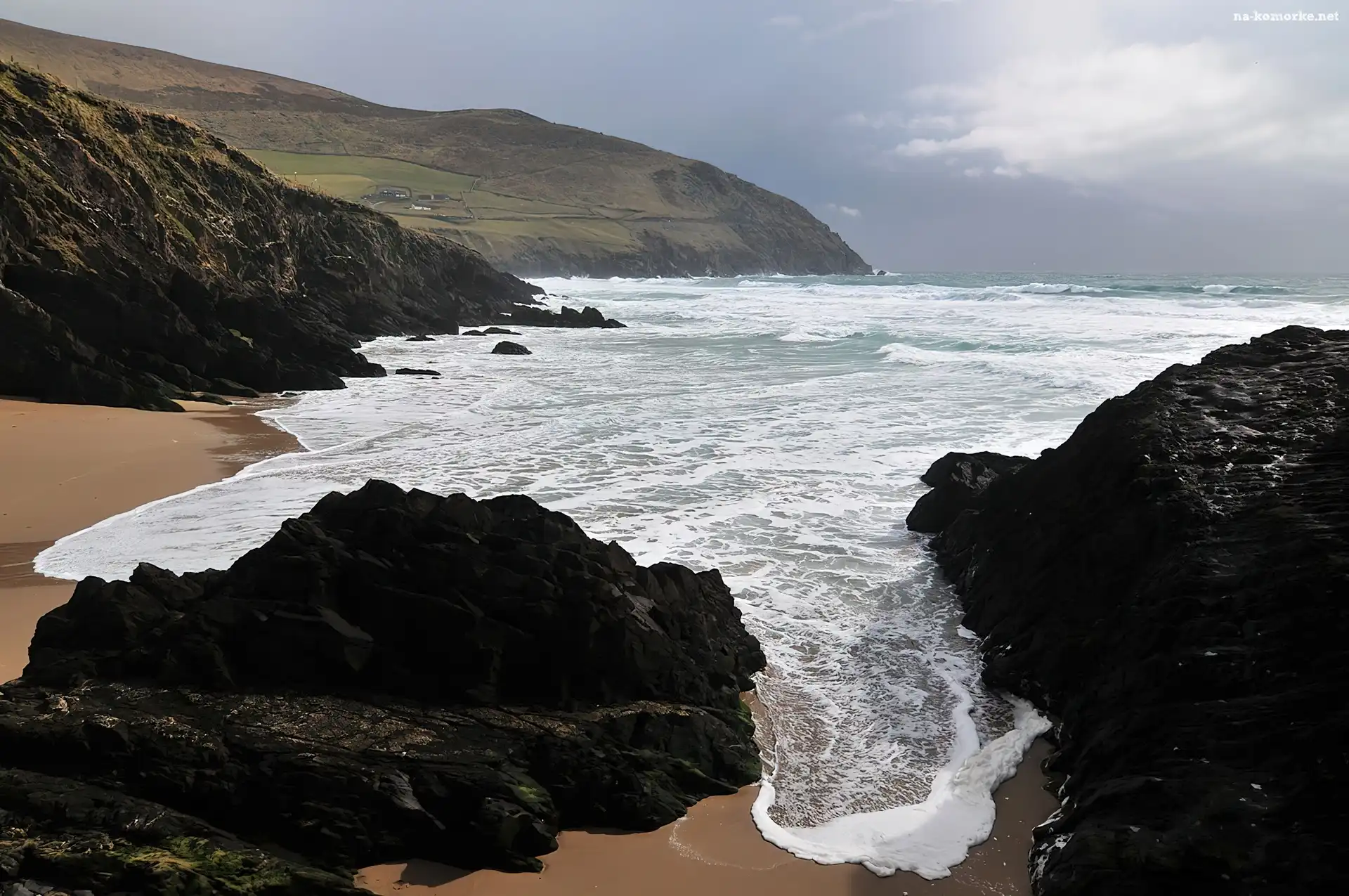 Morze, Piasek, Skalisty, Brzeg na Komórkę