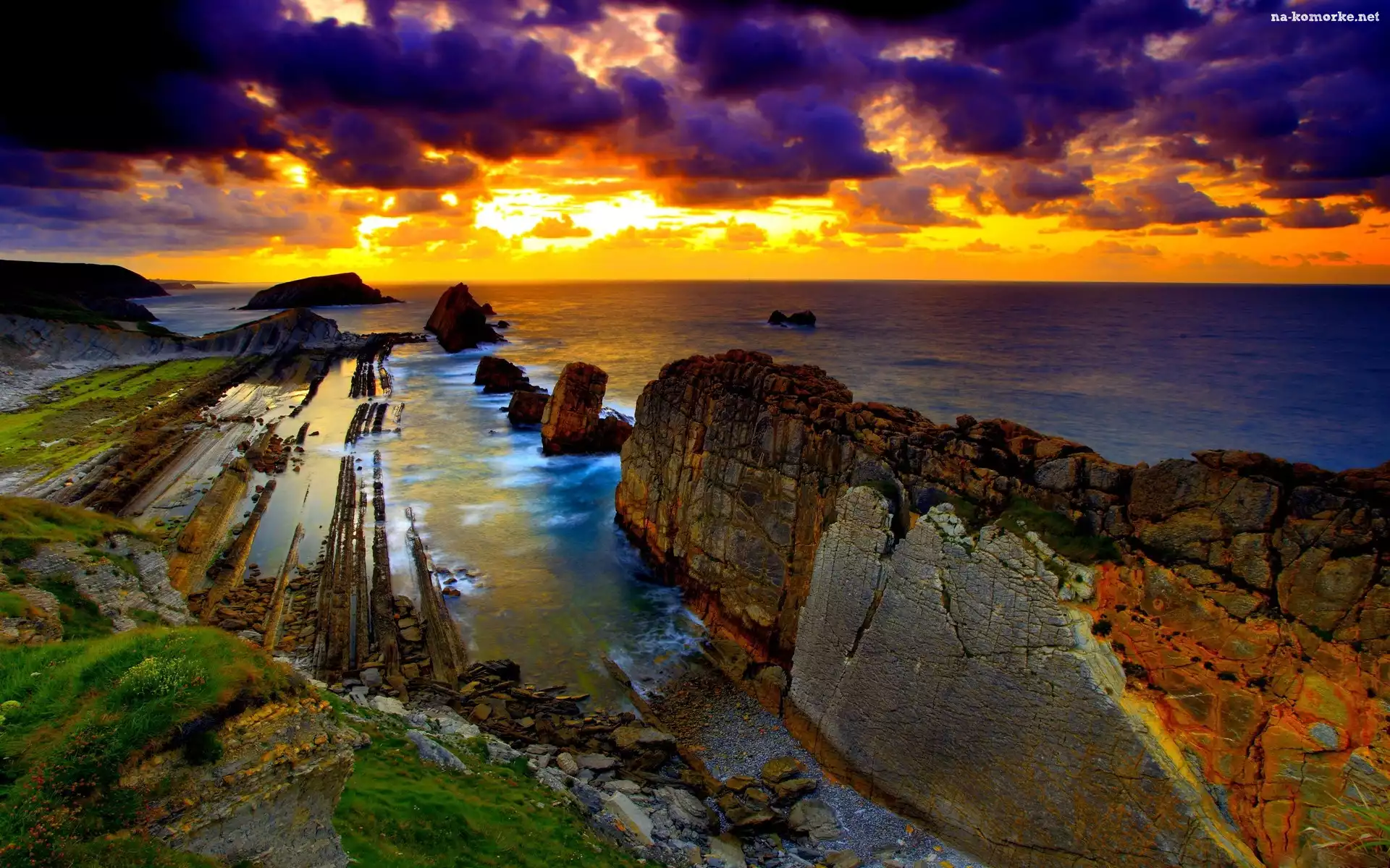 Morze, Niebo, Skały, Zachmurzone na Komórkę