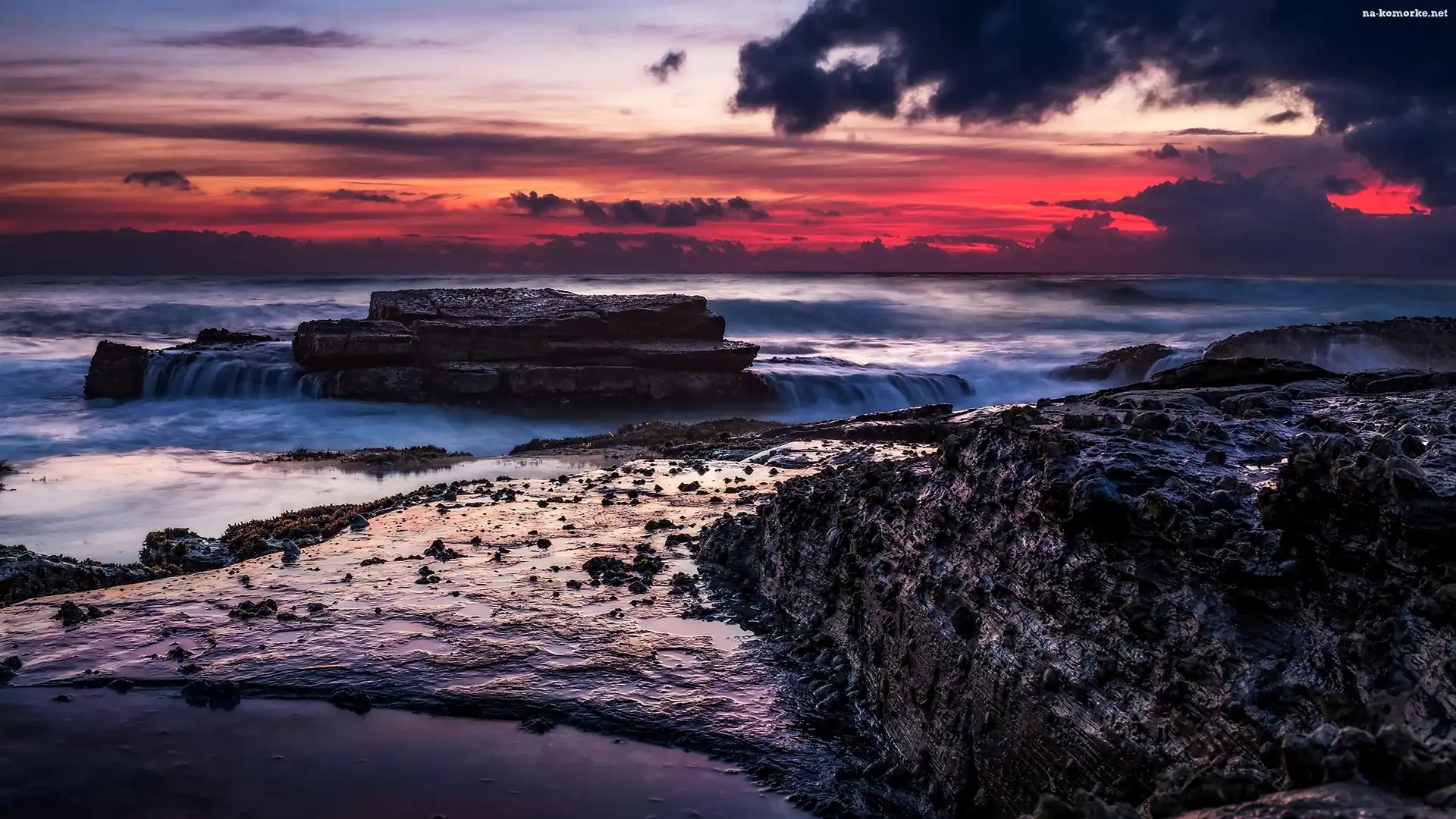 Morze, Słońca, Skały, Zachód na Komórkę