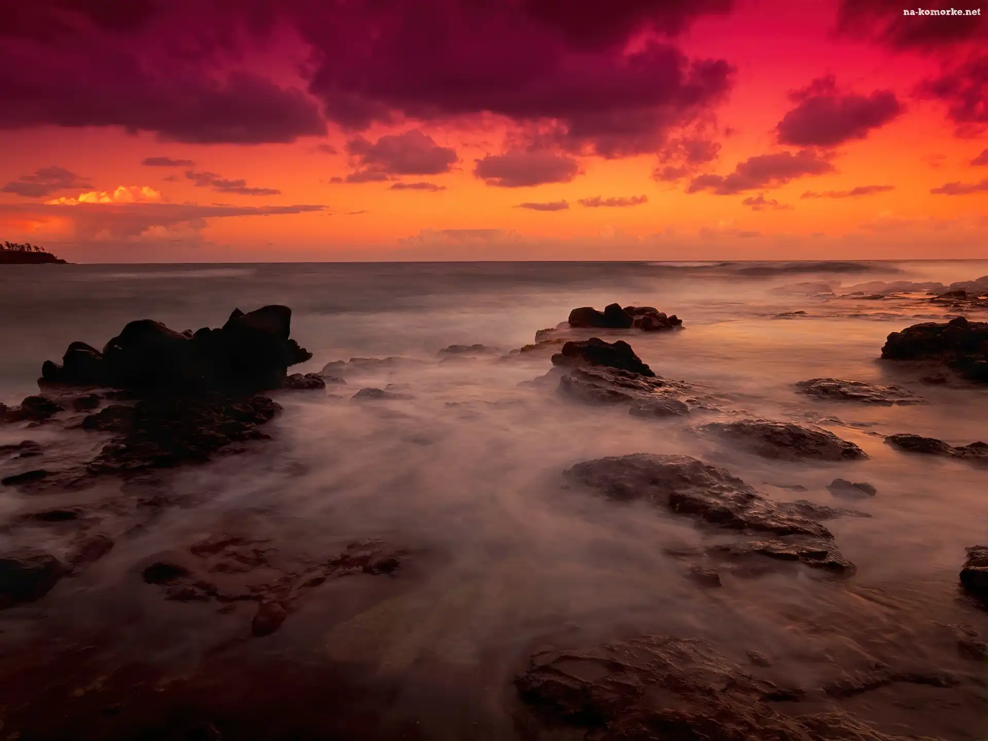 Morze, Zachód Słońca, Skały, Chmury na Komórkę