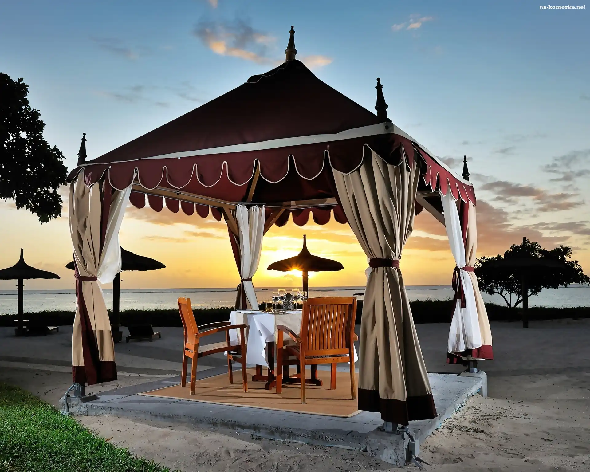 Morze, Zachód, Tropiki, Restauracja, Słońca, Plaża na Komórkę
