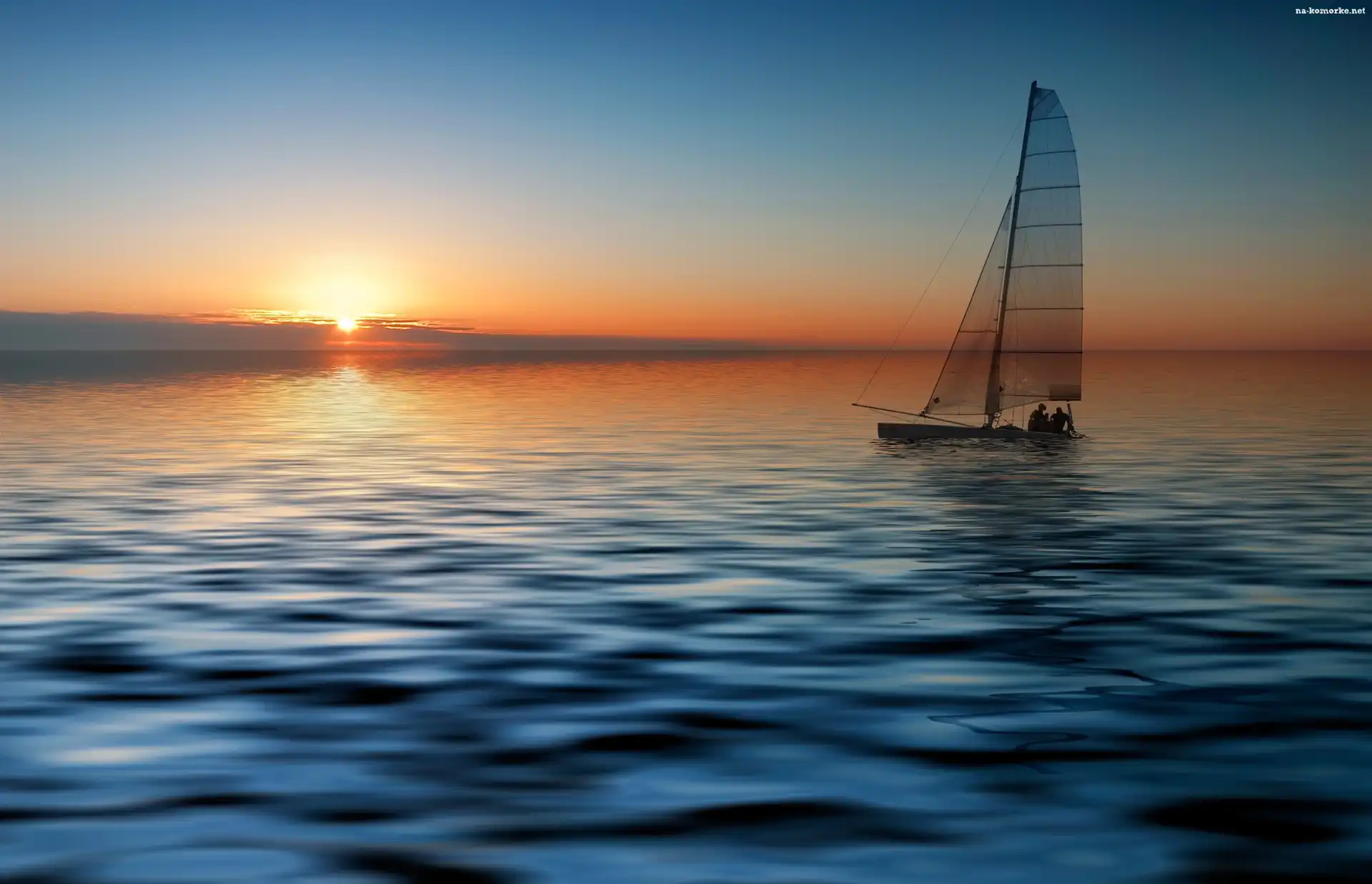 Żaglówka, Słońce, Morze, Zachodzące na Komórkę