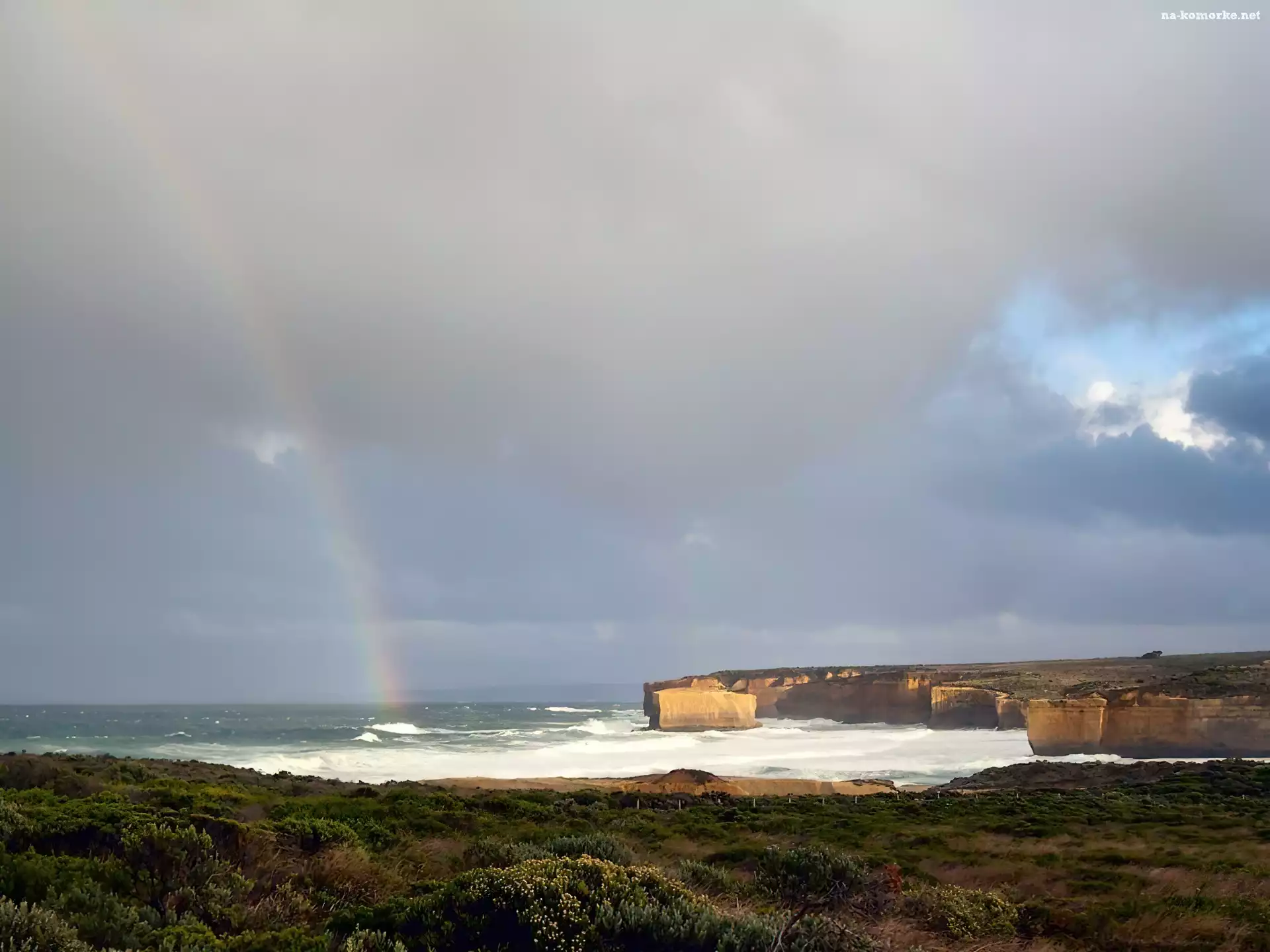 Morze, Tęcza, Trawa, Niebo na Komórkę