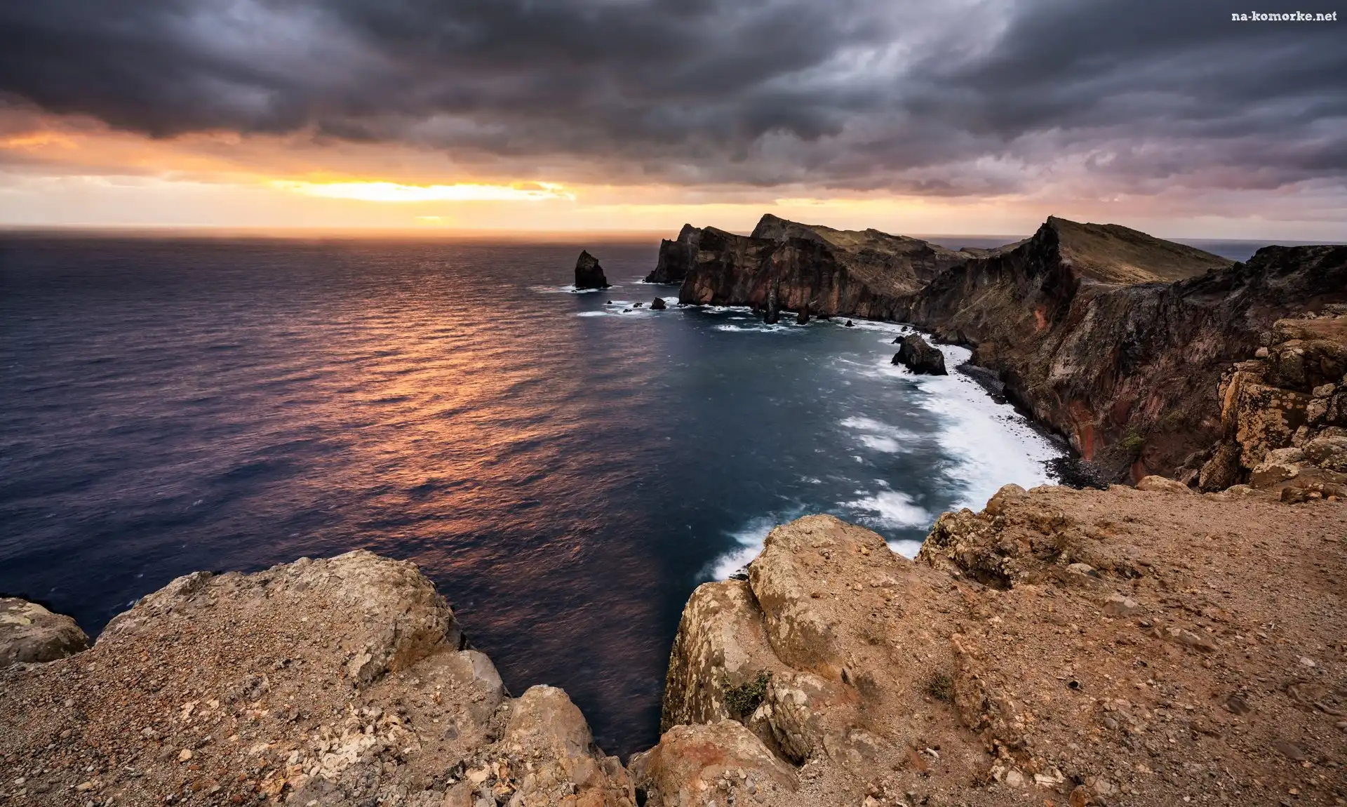 Półwysep Świętego Wawrzyńca, Zachód słońca, Skały, Portugalia, Klify, Chmury, Morze, Wyspa Madera na Komórkę |