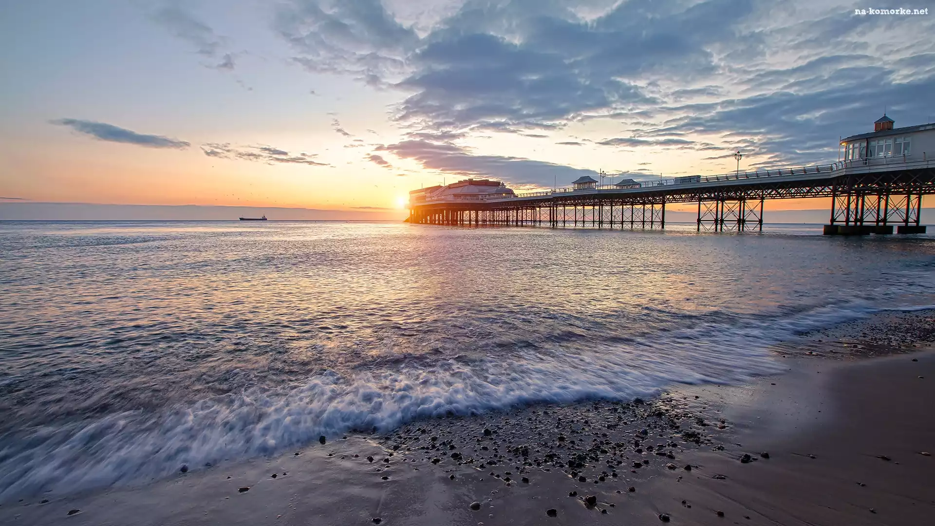 Morze, Chmury, Molo, Wschód słońca na Komórkę