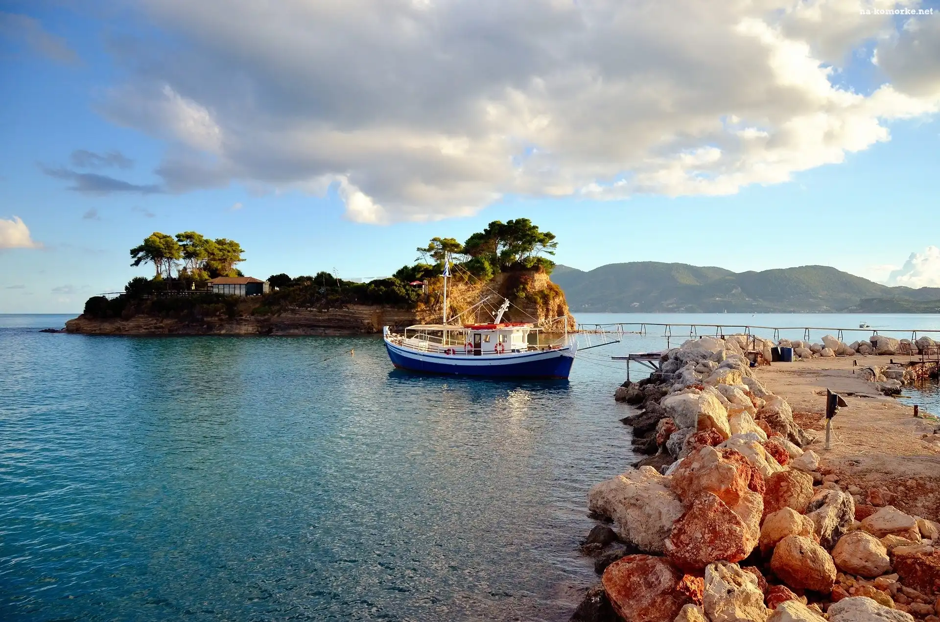 Morze, Grecja, Wysepka, Statek na Komórkę