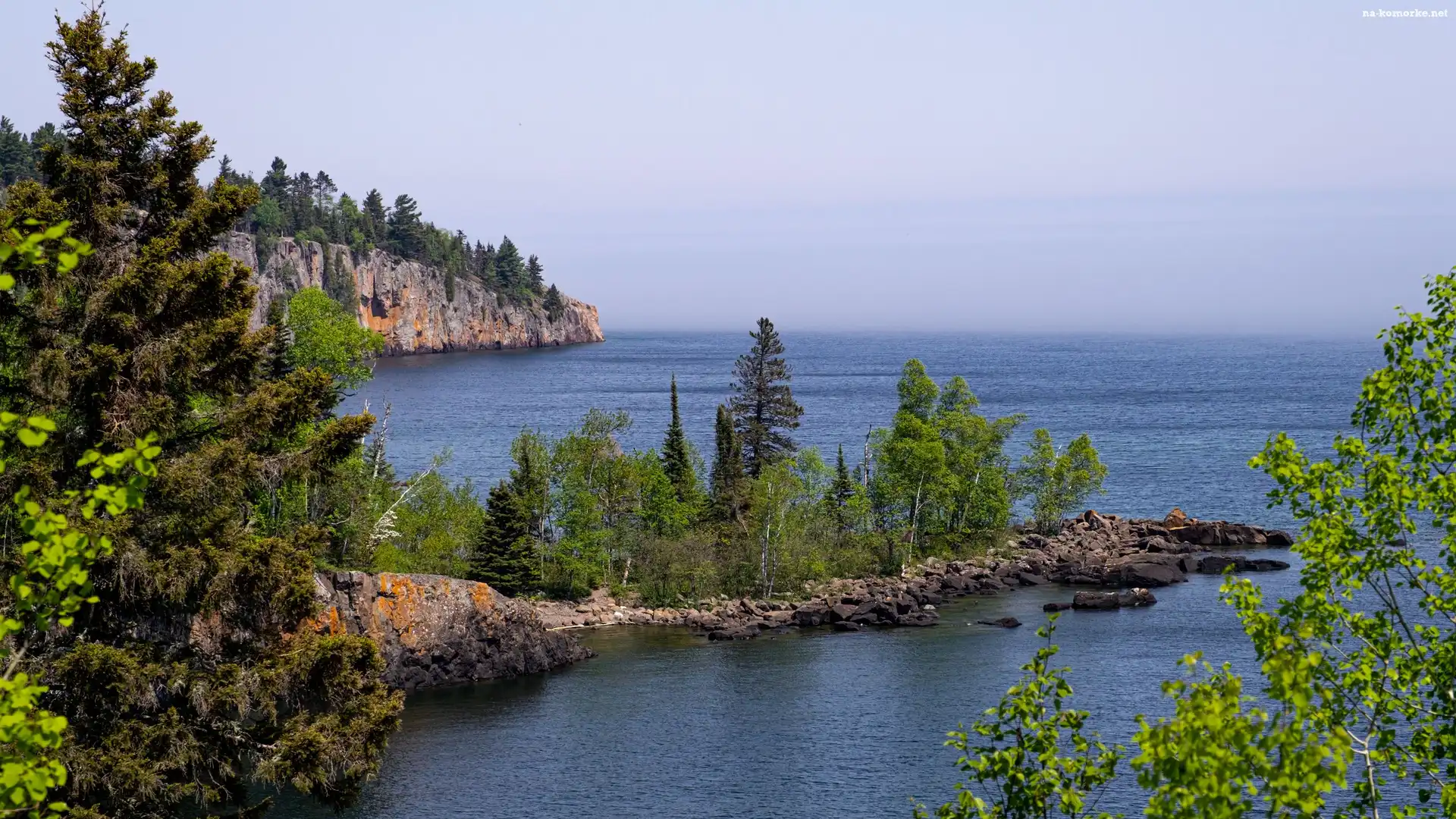 Drzewa, Wybrzeże, Klif, Morze, Skały, Wyspa na Komórkę