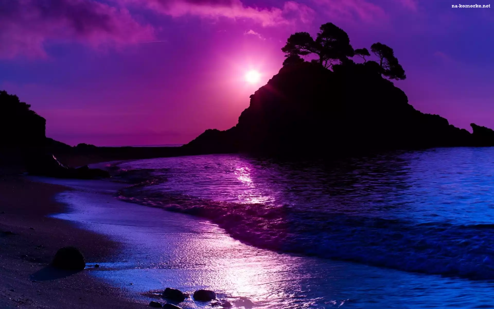 Morze, Słońca, Wyspa, Zachód na Komórkę