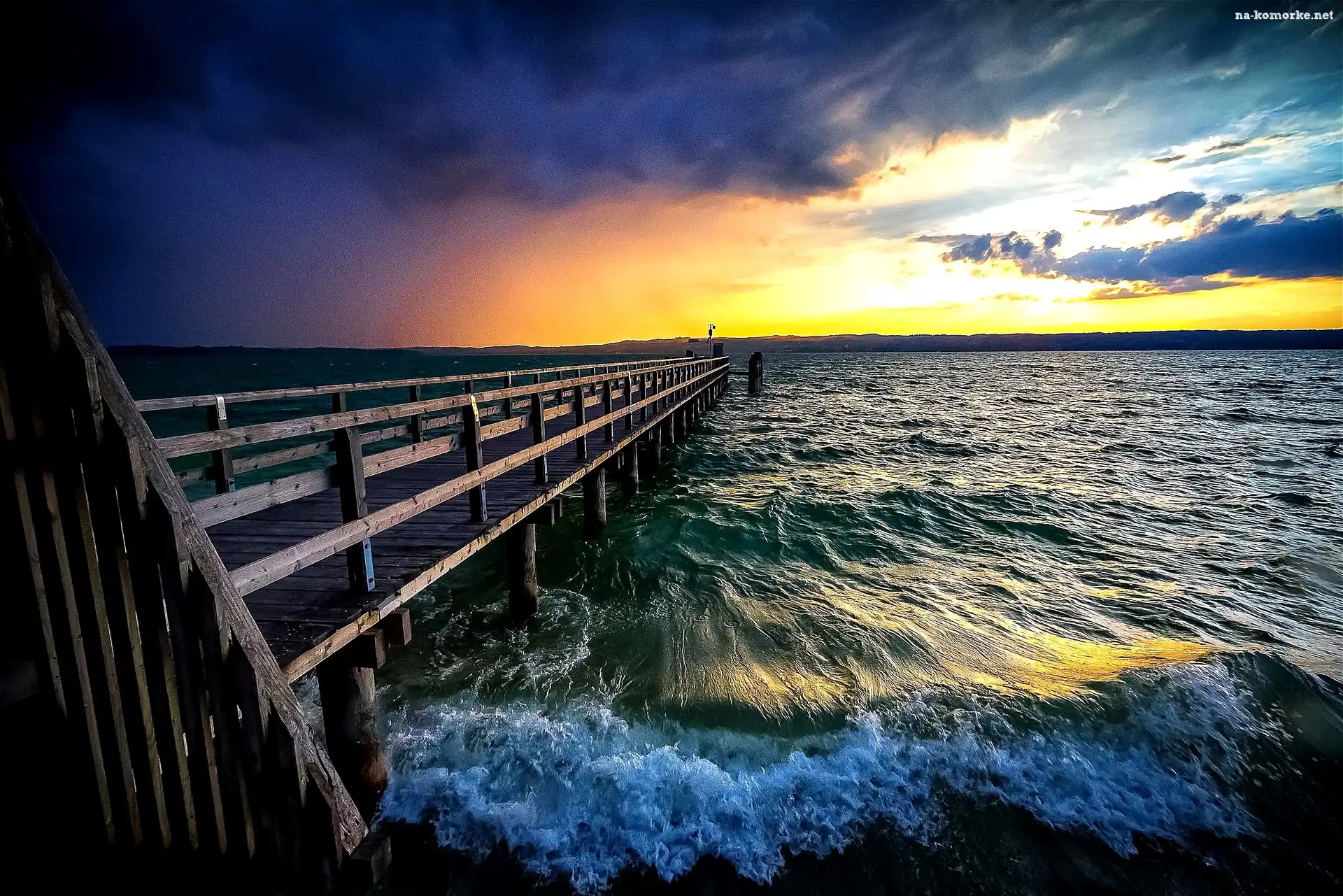 Morze, Molo, Zachód, Słońca na Komórkę