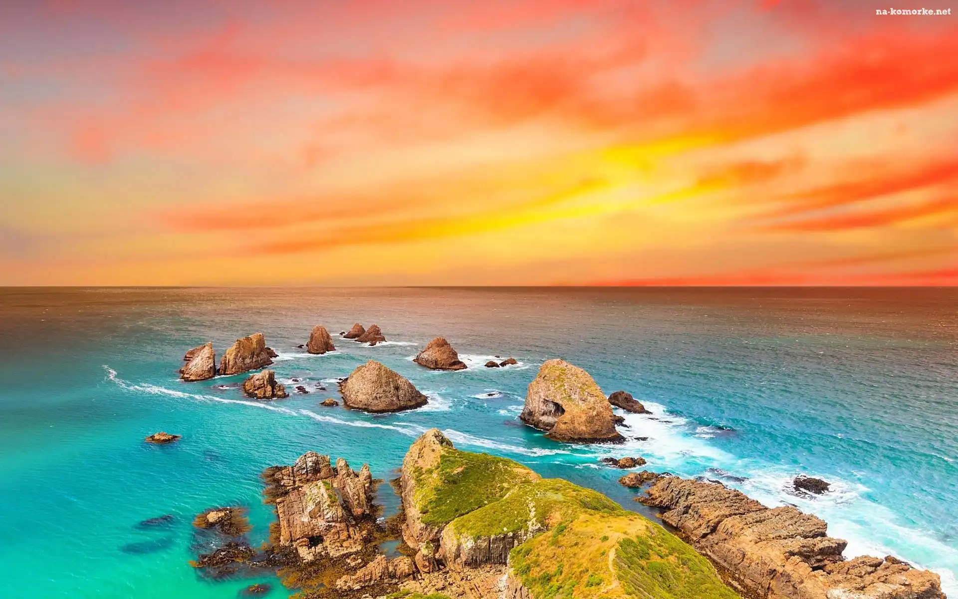 Morze, Skały, Zachód Słońca na Komórkę