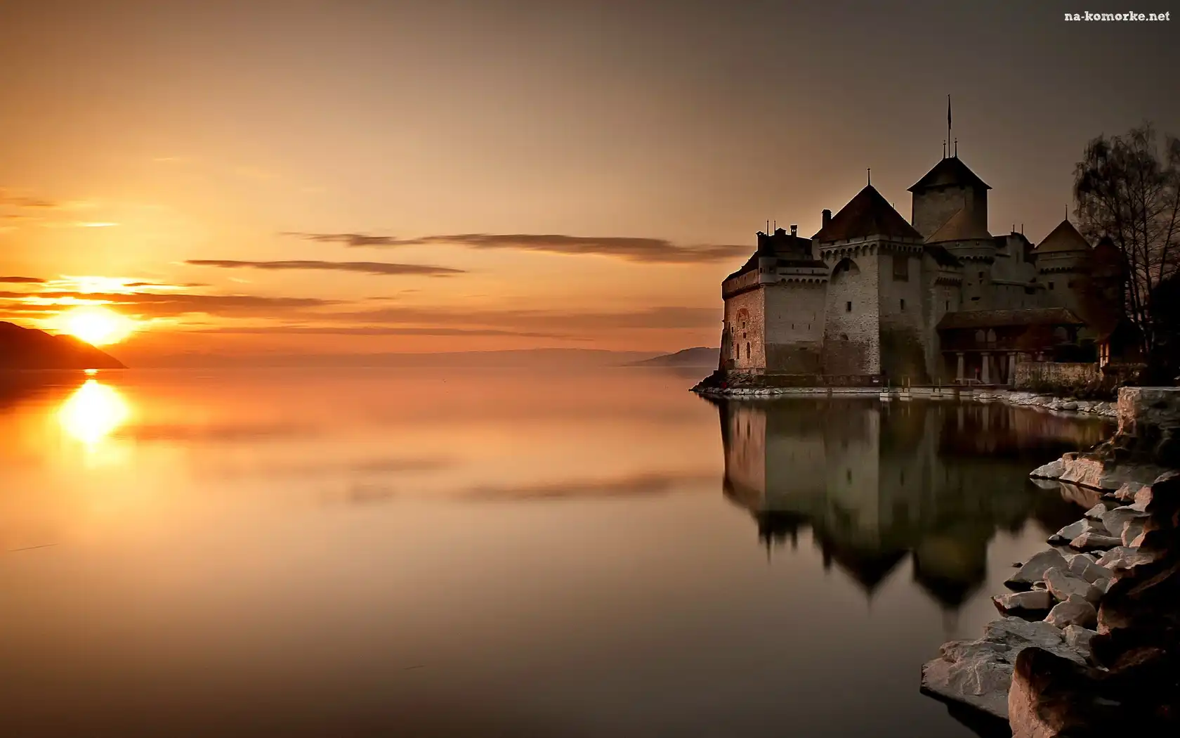 Morze, Zamek, Zachód, Słońca na Komórkę