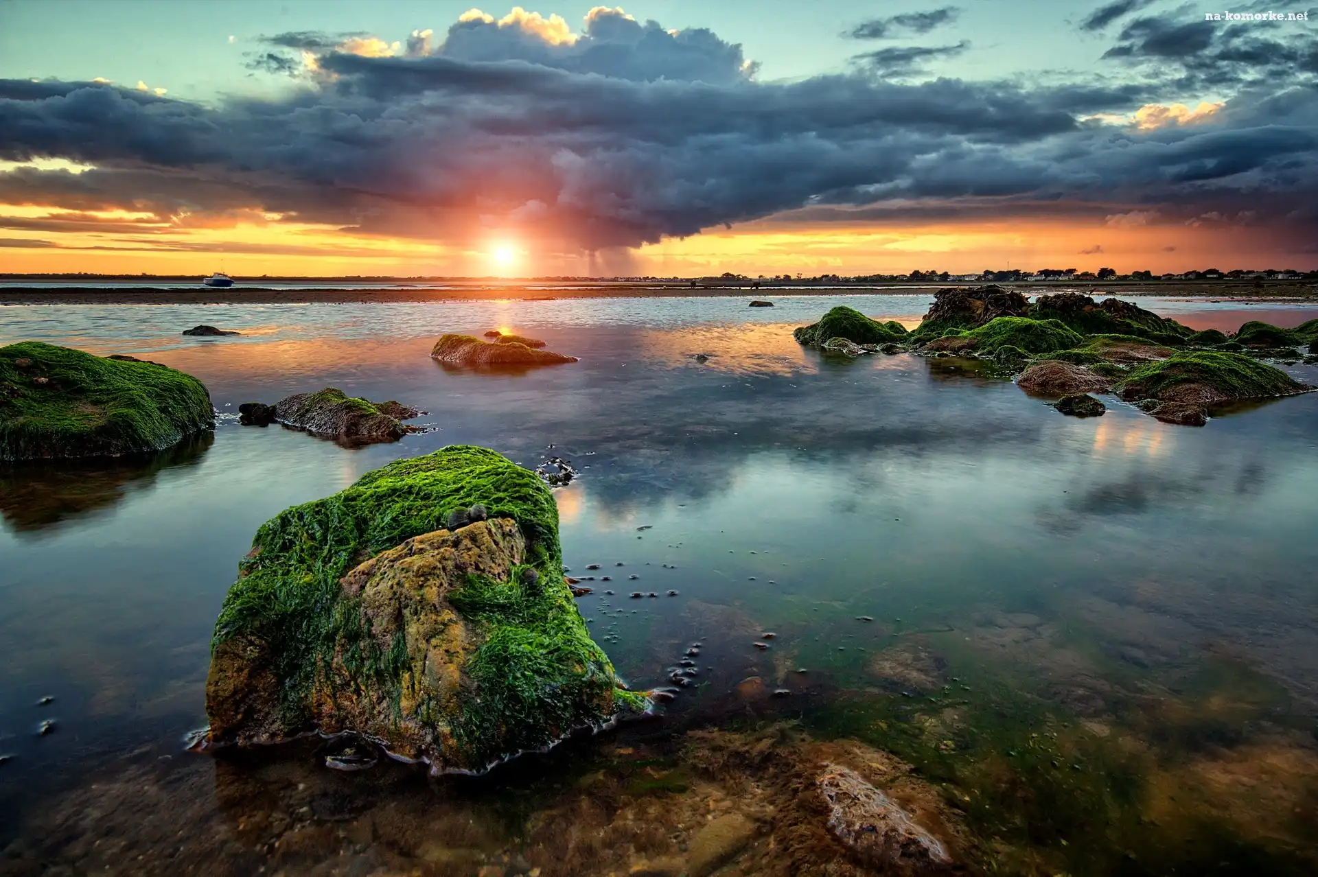 Morze, Wschód słońca, Zatoka, Kamienie na Komórkę