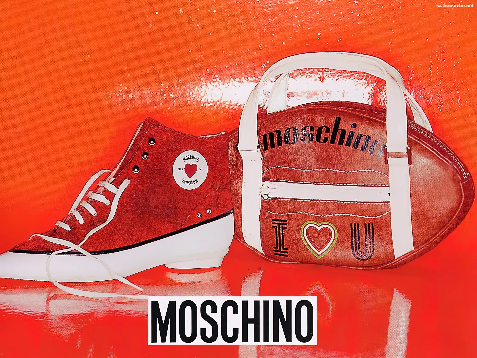 Moschino, czerwone, torebka, but na Komórkę