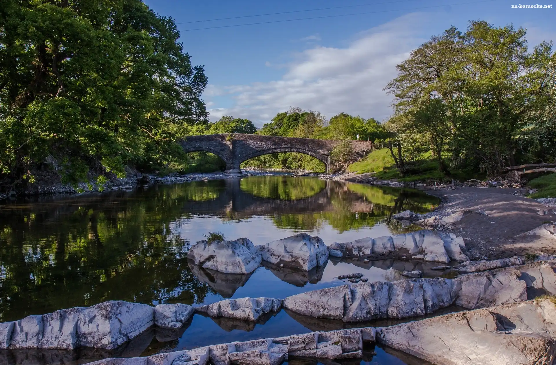 Most, Rzeka, Kamienie, Drzewa, Kamienny na Komórkę