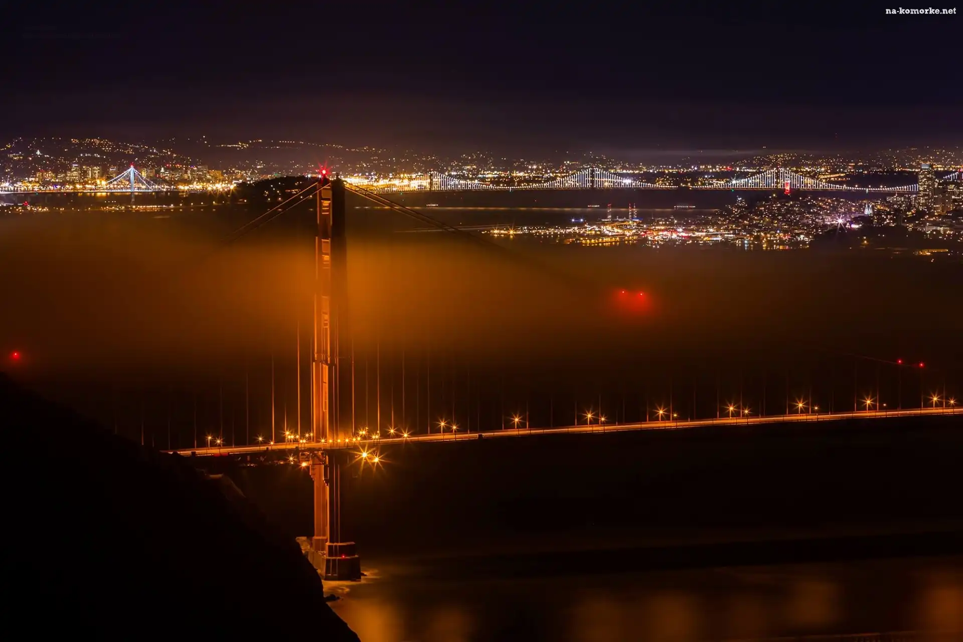 Most, Miasto, Noc, Oświetlone na Komórkę