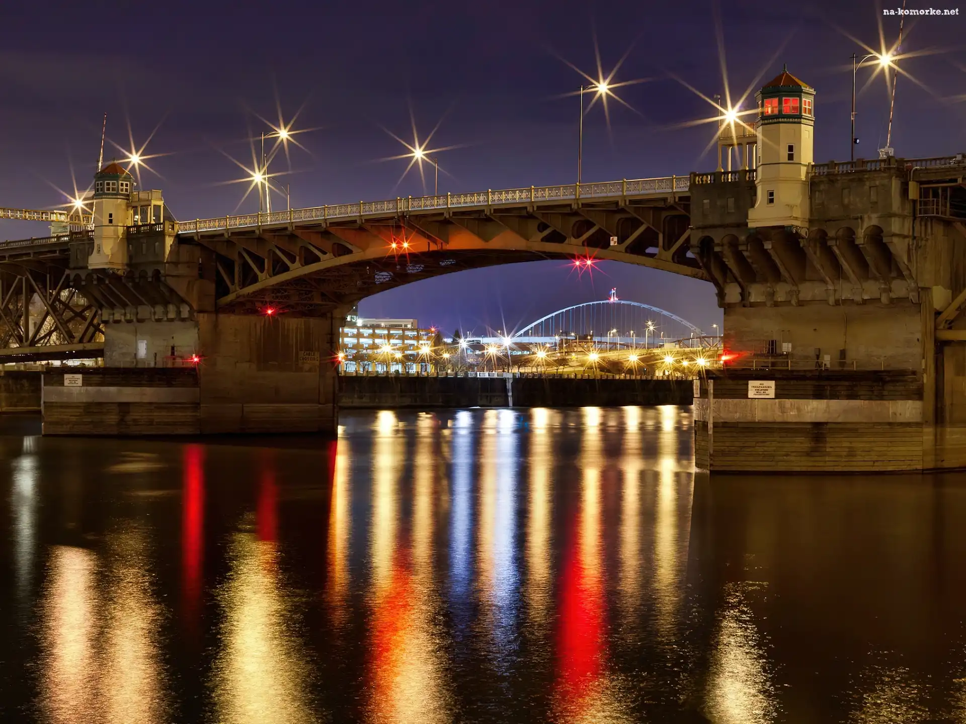 Oświetlony, Most, Rzeka na Komórkę